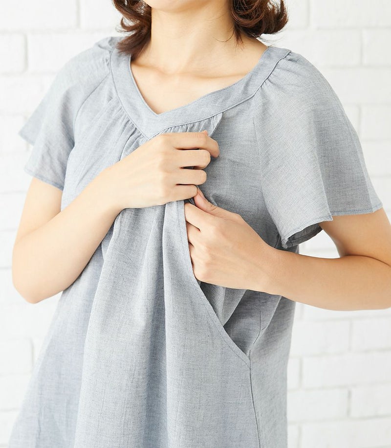 まるいお腹を優しく包み込み、妊婦さんがきれいに見えるシルエットにこだわりました。 大きくなったお腹を締めつけず、ゆったりと楽に着ていただけます。 産後の授乳のしやすさも追求した授乳服なので、1枚で2役の便利な授乳服です。