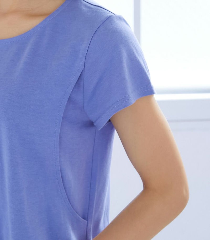 生地が薄めでさらっとしていて、着心地がいいです。丈も長めなので、産後の気になる腰回りが隠れてありがたいです。授乳がとてもしやすいです。