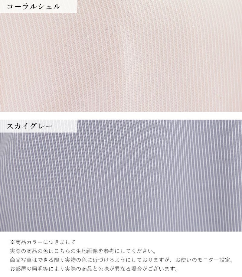 以前販売されていたブルーを愛用しています。シワになりにくく、ストレッチ性もあり、暑くなる時期にもぴったりの生地なので。今回色違いが出た為ピンクを購入しました。上品なピンクで、顔も明るく見えて良いです。色が薄い為か、ブルーよりはシワが気になりますが、許容範囲です。表は生地が二重なので下着は透けませんが、裏は濃い色の下着(カーキ)は透けてしまいました。中に穴あきインナーを着れば問題ありませんでしたが、真夏には一枚で着たいので、透けにくい色の下着を準備しなければと思っています。