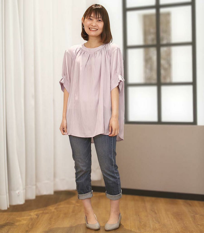 着用時にはやわらかなシルエットが印象的なブラウスです。