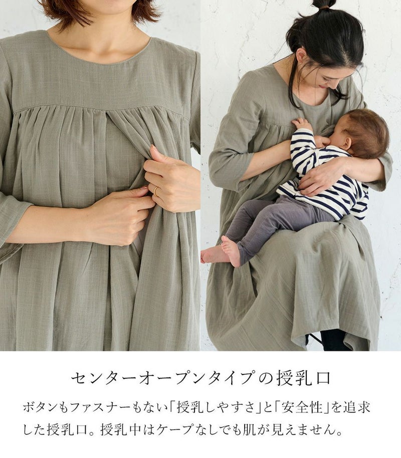 モーハウスオリジナル日本製授乳用ワンピース ふんわりガーゼワンピース