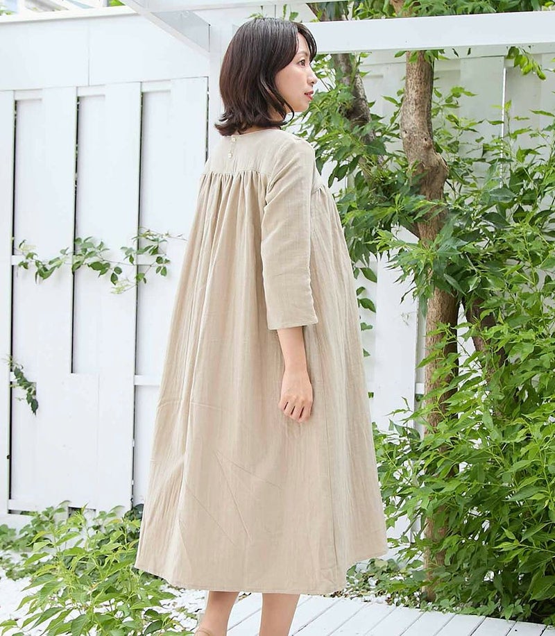 Wガーゼのコットンワンピース1枚でさらりとお出かけワンピース