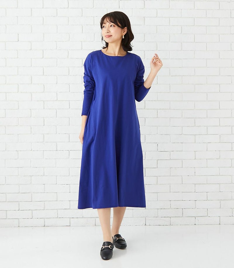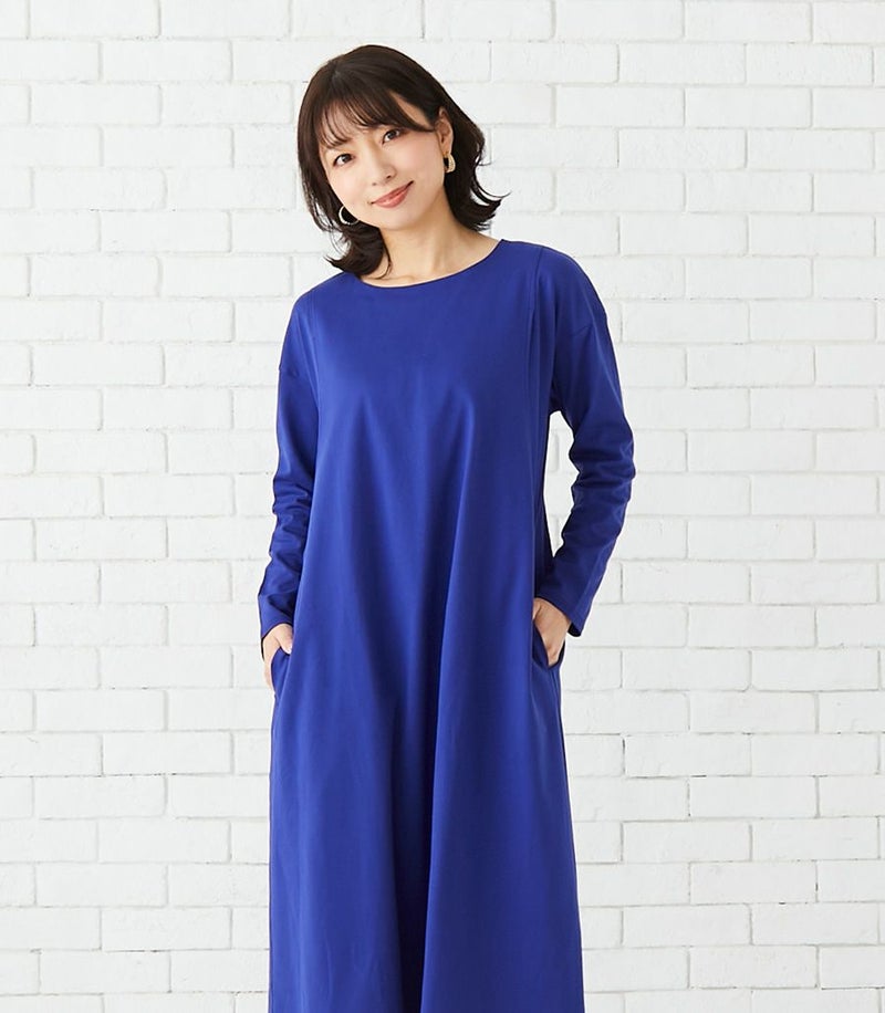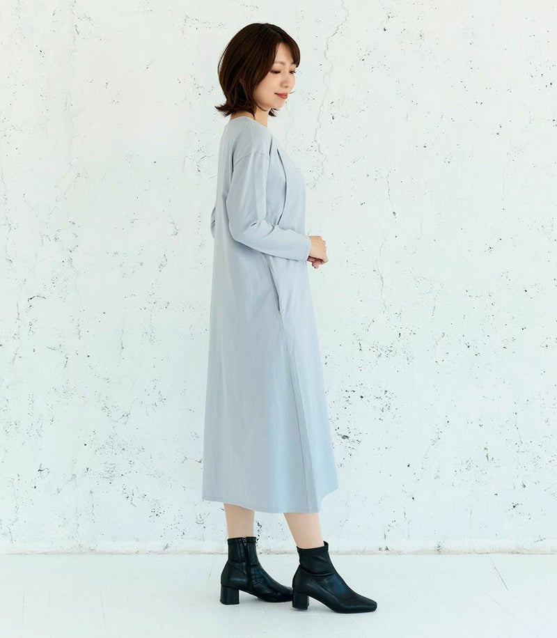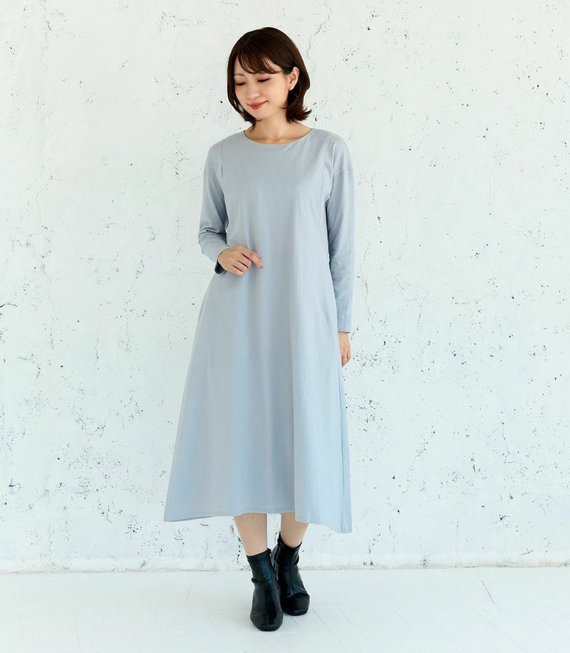 上品なコットン100%素材に、ドレープを効かせたゆったり感で大人のリラックスムードを表現したロングワンピース。裾に向かって贅沢に生地を使用することでやわらかな動きを与えてくれます。ドロップショルダーが、1枚でさらっと着ても手抜き感を感じさせません。 両脇のポケットも嬉しいポイント。 COLOR:ブルー/MODEL:164cm