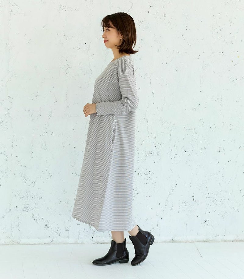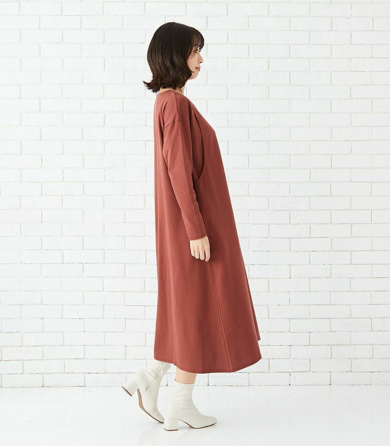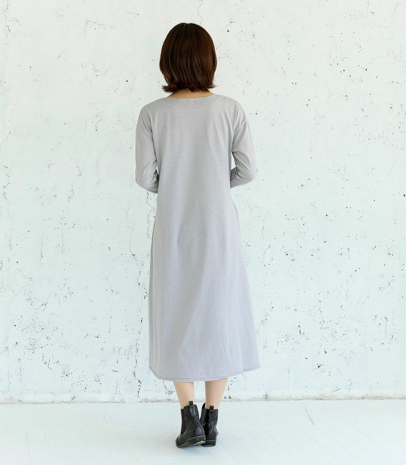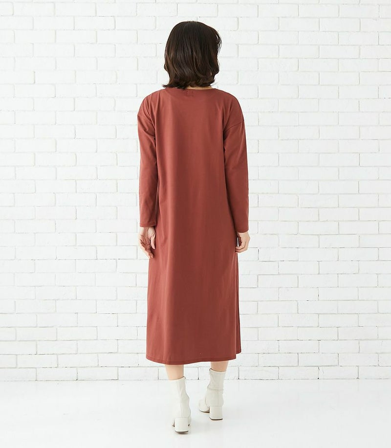 上品なコットン100%素材に、ドレープを効かせたゆったり感で大人のリラックスムードを表現したロングワンピース。裾に向かって贅沢に生地を使用することでやわらかな動きを与えてくれます。ドロップショルダーが、1枚でさらっと着ても手抜き感を感じさせません。 両脇のポケットも嬉しいポイント。 ポケット×2 〈生産国:日本〉 〈マタニティ(腹囲100cm)対応授乳服〉 まるいお腹を優しく包み込み、妊婦さんがきれいに見えるシルエットにこだわりました。 大きくなったお腹を締めつけず、ゆったりと楽に着ていただけます。 産後の授乳のしやすさも追求した授乳服なので、1枚で2役の便利な授乳服です。 〈素材:綿100%〉 しっかりとした目の詰まったコットン100%素材。洗濯にも強く型崩れしにくい素材です。 〈洗濯表記:洗濯機OK〉
