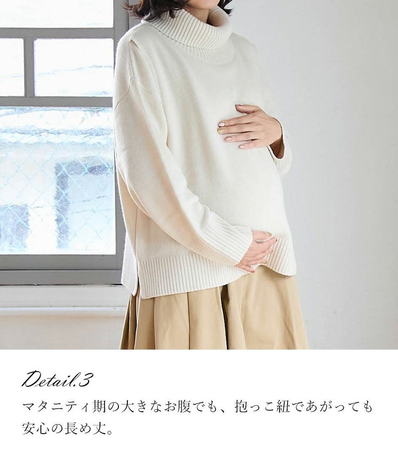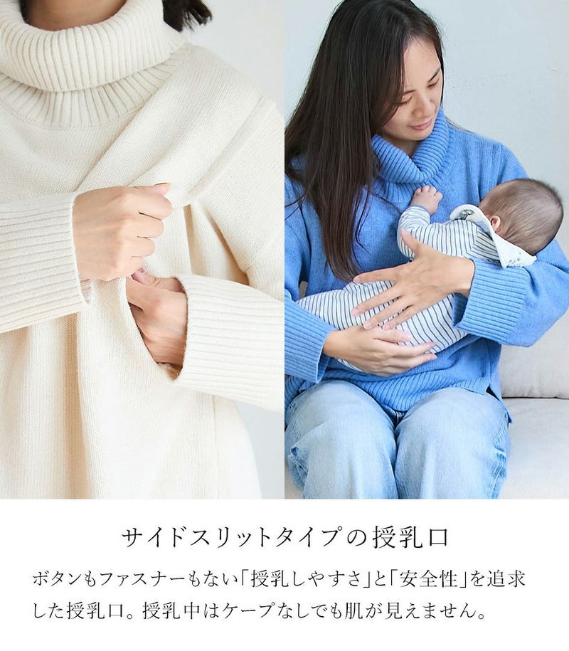 まるいお腹を優しく包み込み、妊婦さんがきれいに見えるシルエットにこだわりました。 大きくなったお腹を締めつけず、ゆったりと楽に着ていただけます。 産後の授乳のしやすさも追求した授乳服なので、1枚で2役の便利な授乳服です。