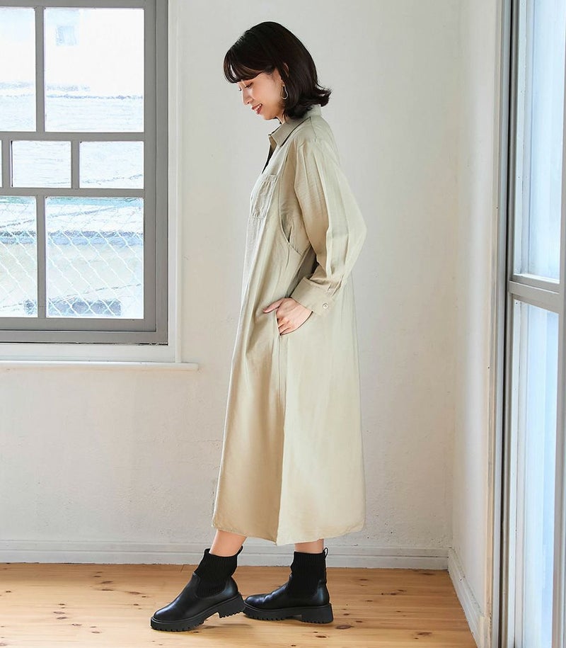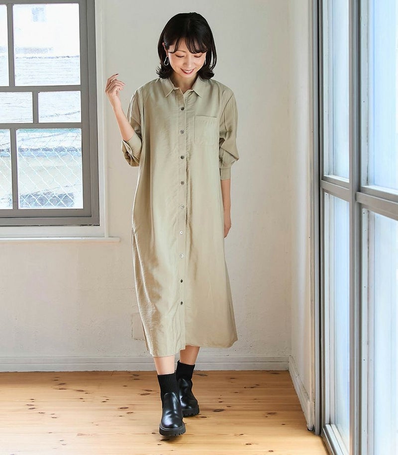 胸のポケットがポイント衿とカフスできちんと感もあるワンピース