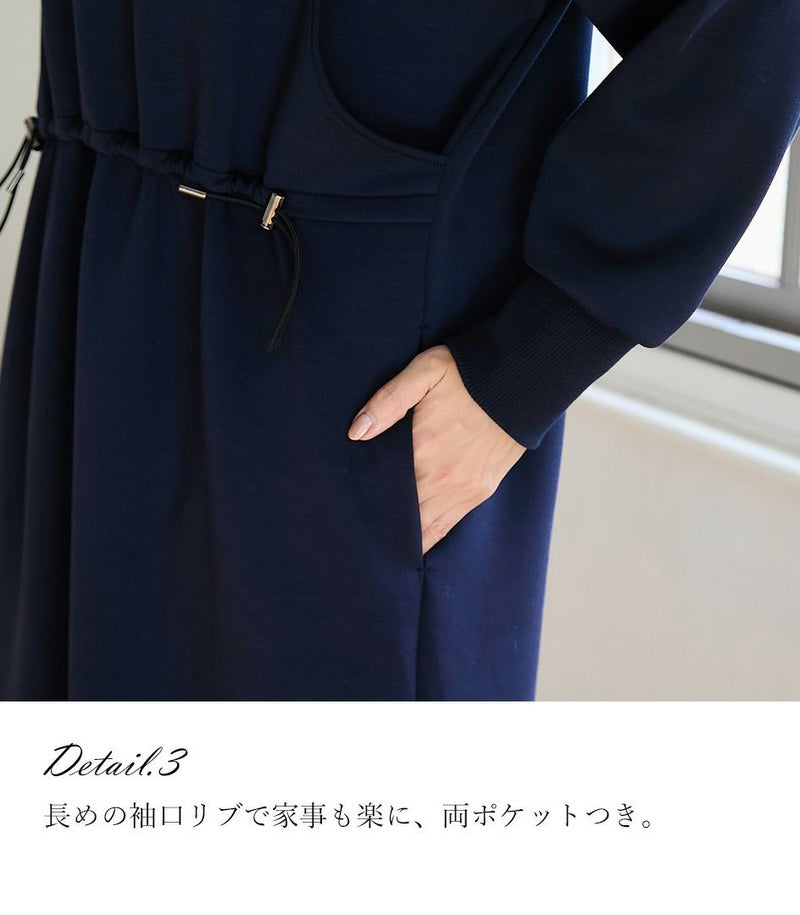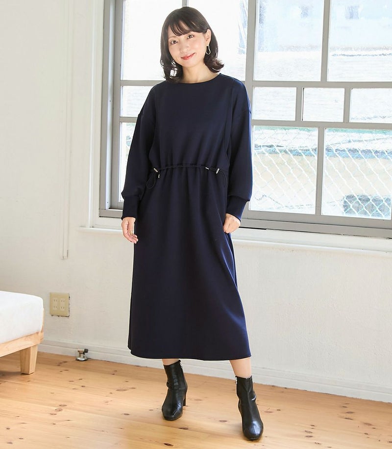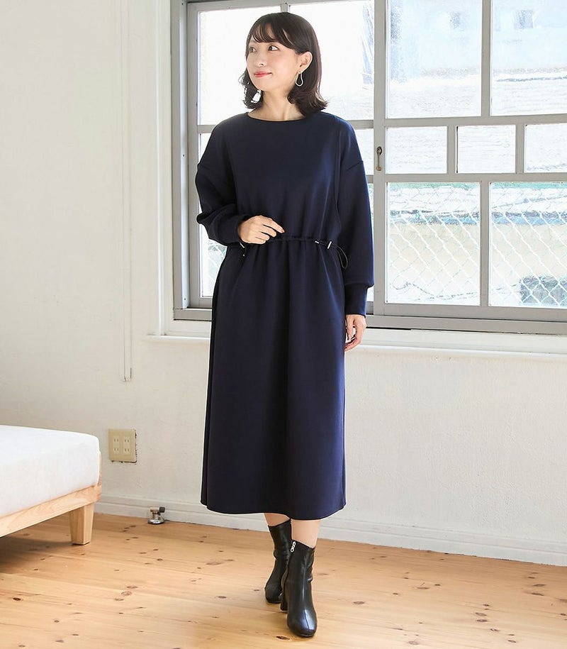 ウエスト部分のドロストデザインがポイントのワンピース。ドロストコードでお好みのシルエットに調節可能です。滑らかなダンボール素材はカジュアルすぎずお出かけ着にも◎バッグの裾のスリットで足さばきも良く、動きやすさも抜群です。 ●ポケット×2 〈マタニティ(腹囲100cm)対応授乳服〉 まるいお腹を優しく包み込み、妊婦さんがきれいに見えるシルエットにこだわりました。 大きくなったお腹を締めつけず、ゆったりと楽に着ていただけます。 産後の授乳のしやすさも追求した授乳服なので、1枚で2役の便利な授乳服です。 〈生産国:日本〉 〈素材:ポリエステル76%、レーヨン18%、ポリウレタン6% / リブ部分:綿98%、ポリウレタン2%〉 滑らかな肌触りのダンボール素材。やわらかくストレッチ性もあり、着心地抜群です。ほどよい厚みで長い期間着用できます。シワになりにくいのも嬉しいポイント。 〈洗濯表記:洗濯機OK/ネット使用※アイロン時あて布を使用〉