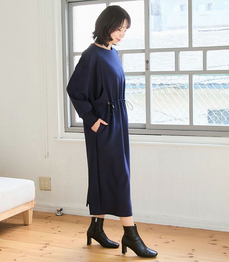 ドロストのデザインがウエストマークになってスタイルアップ効果も◎
