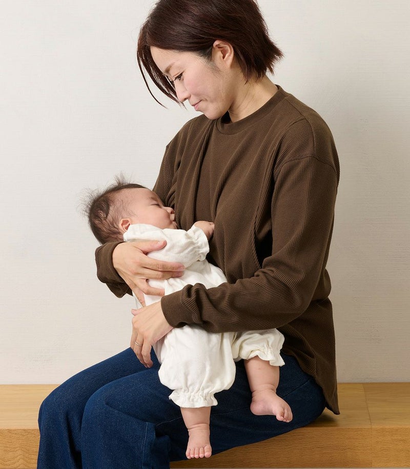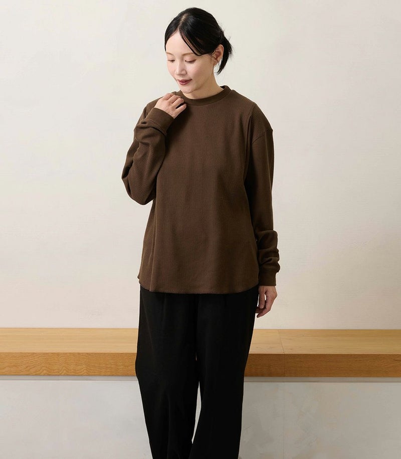 モーハウスオリジナル日本製授乳用トップス ワッフルクルーネック