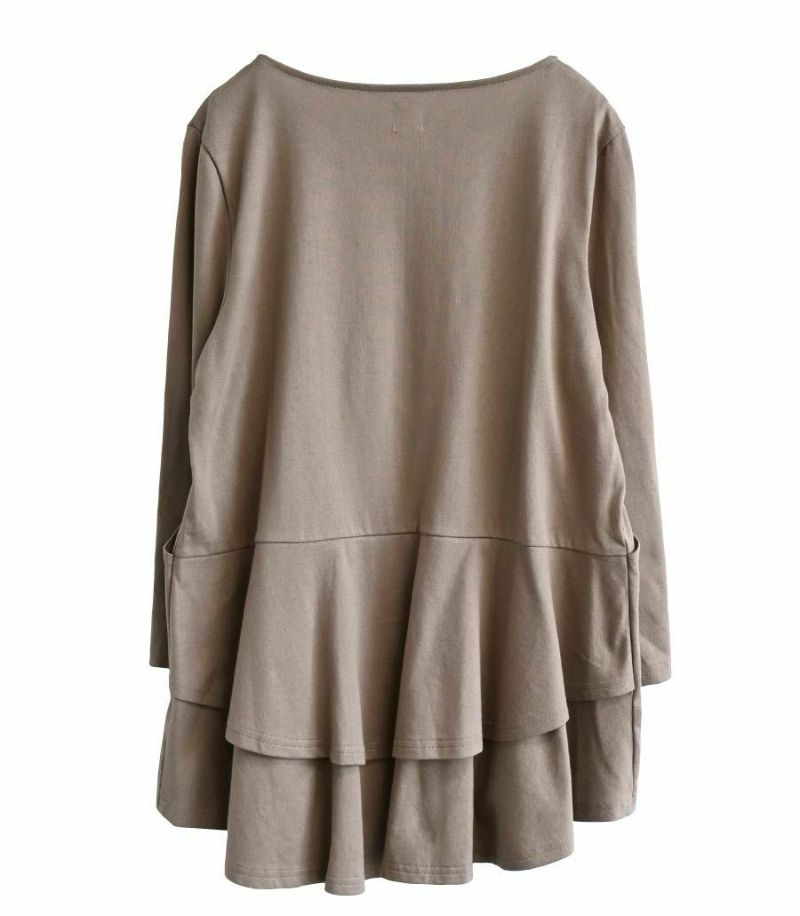 やわらかなコットン100%素材のカットソーはストレスフリーな着心地。ふわりときれいに広がるバックのフレアーが気になるお尻まわりをさりげなくカバーしてくれスッキリと上品な印象に。体型カバー&大人かわいいが両方叶う万能トップス。 ●ポケット× 〈マタニティ(腹囲100cm)対応授乳服〉 まるいお腹を優しく包み込み、妊婦さんがきれいに見えるシルエットにこだわりました。 大きくなったお腹を締めつけず、ゆったりと楽に着ていただけます。 産後の授乳のしやすさも追求した授乳服なので、1枚で2役の便利な授乳服です。 〈生産国:日本〉 〈素材:綿100%〉 やわらかな上質なコットン100%天竺はお洗濯に強く綺麗なラインが長続きします。着やすく肌さわりのよい生地は長い期間活躍します。 〈洗濯表記:洗濯機OK〉