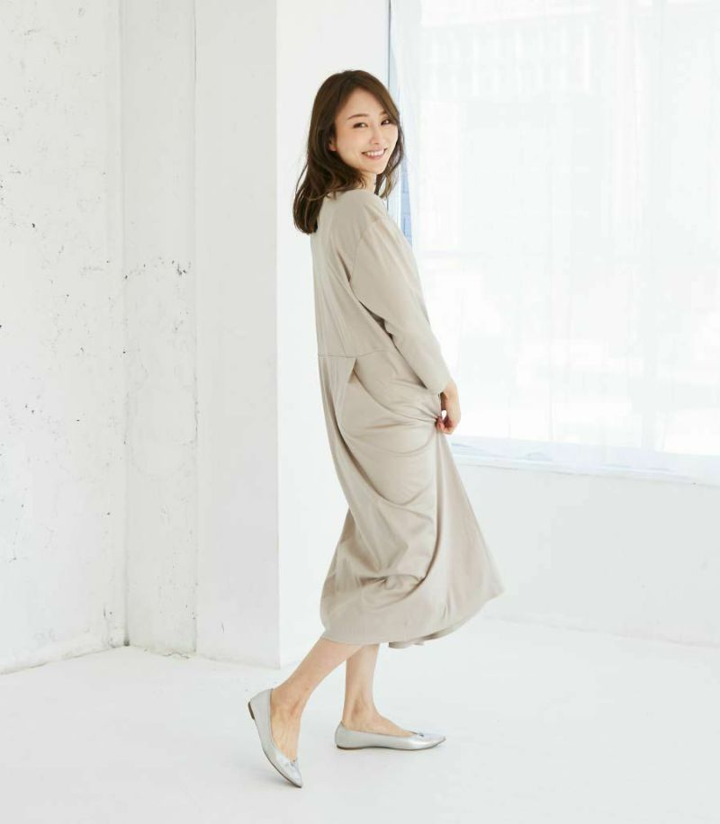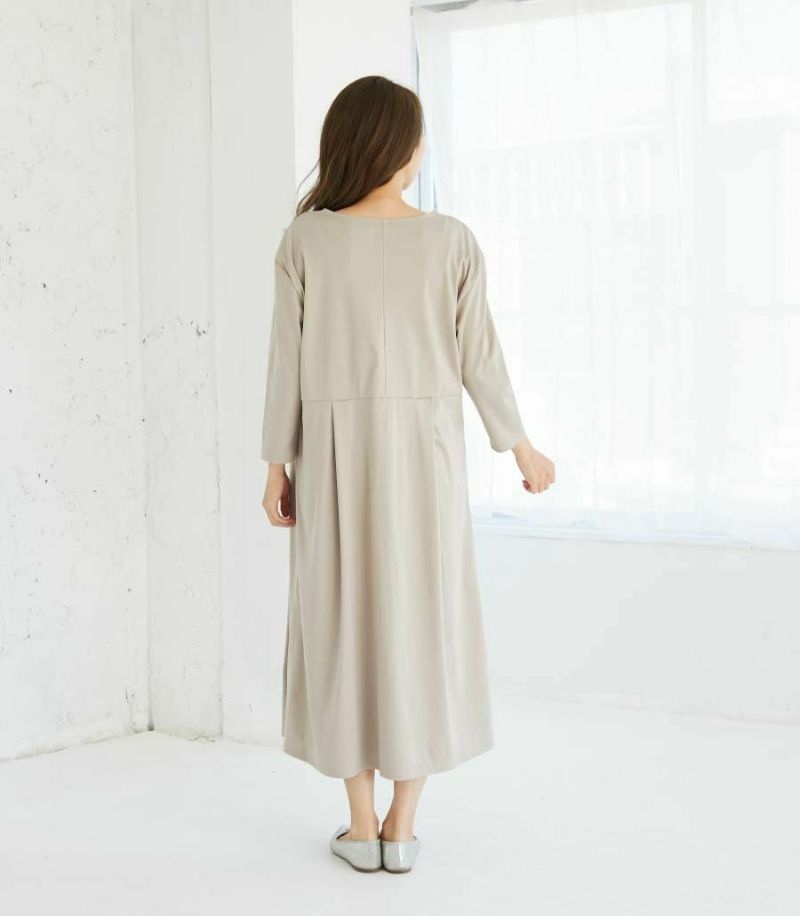 ウエストの切り替えデザインが特徴のワンピースはやわらかなフレアーシルエット。肌ざわりのよいカットソー素材で着心地も◎。シンプルながら存在感のあるデザインで、1枚で着るだけでもコーディネイトが決まります。気になるウエスト周りを切り替えのタックとフレアーラインがスッキリと見せてくれます