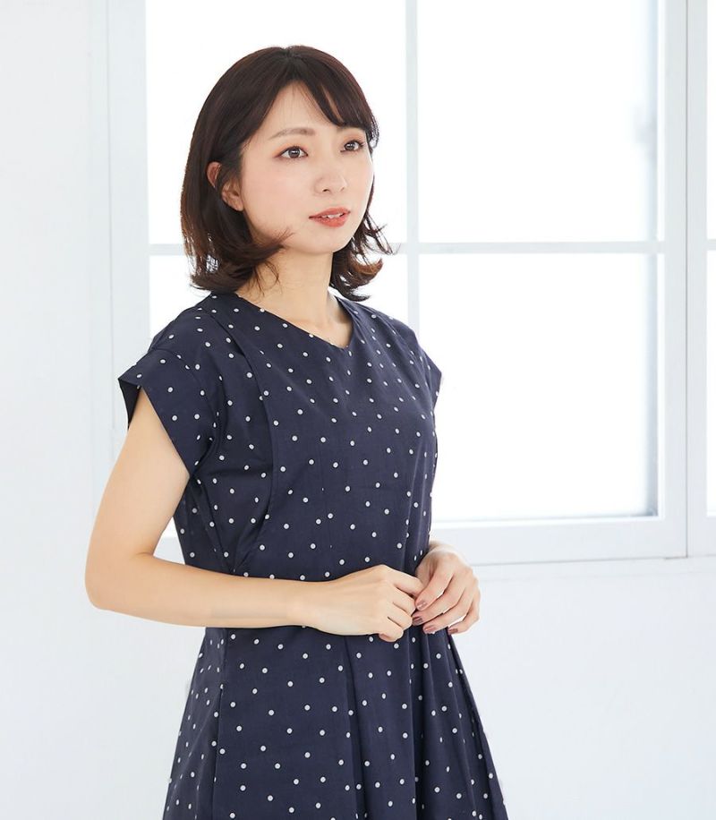 授乳服〈授乳/マタニティ〉 【試着対象】オーガニックドットワンピース 授乳服 マタニティ服 日本製