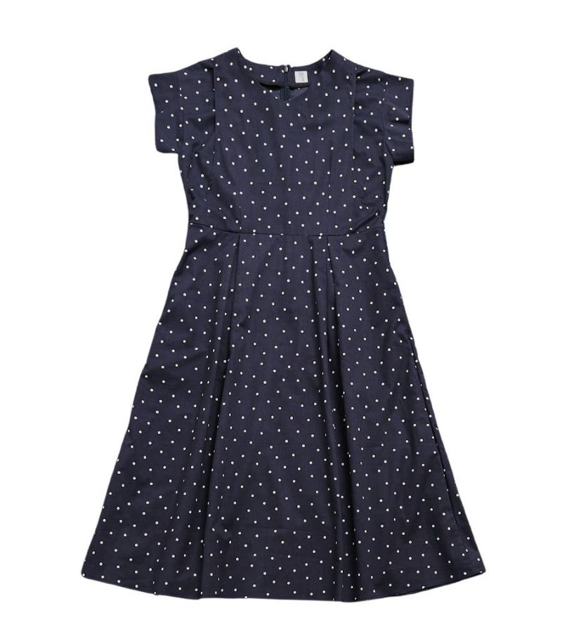 産後すっきりしない体型ですが、このワンピースを着ると痩せて見えます。ベージュのドット柄もかわいいです。