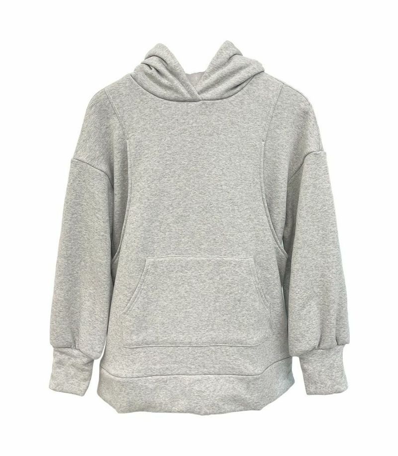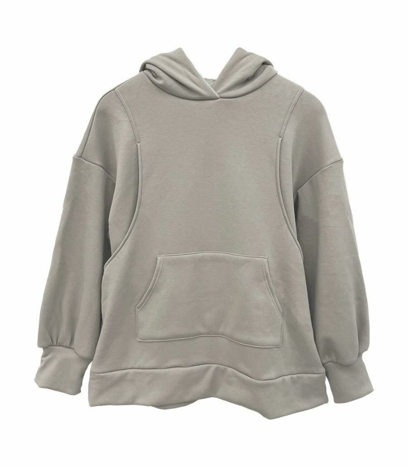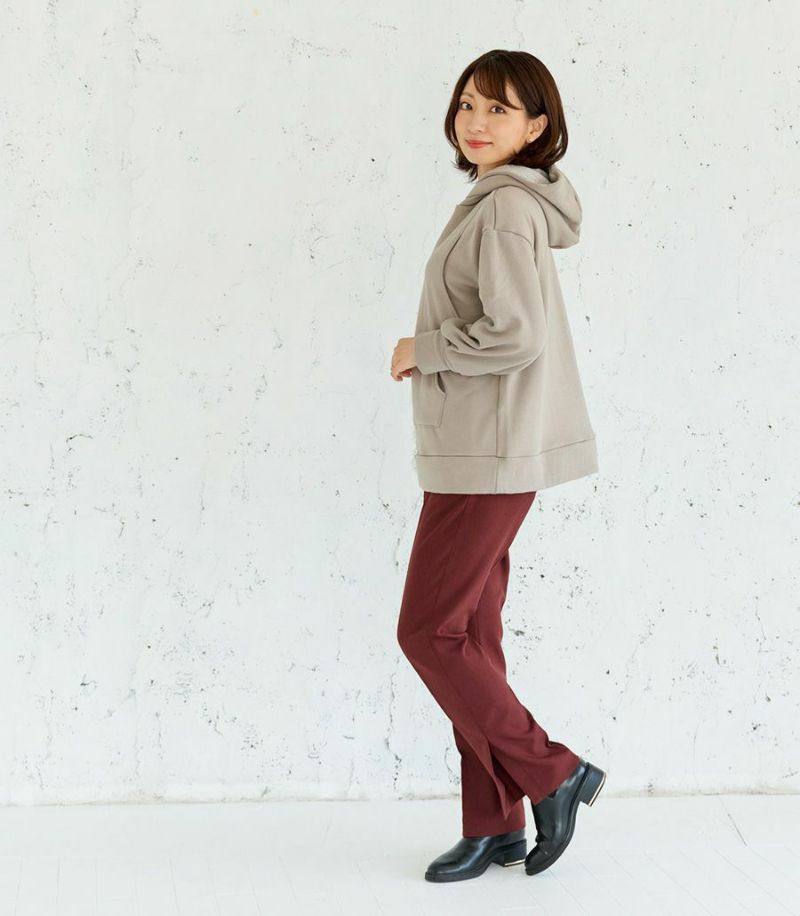 ふんわりと柔らかい裏起毛のあたたかな着心地のフーディー。ゆったりとしたシルエットにこだわり、女性らしくスッキリときれいに着こなせます。 裏側は総起毛なので毛布のようにあたたかく、寒い季節に1枚あると重宝します。 ●ポケット×1(カンガルーポケット) 〈マタニティ(腹囲100cm)対応授乳服〉 まるいお腹を優しく包み込み、妊婦さんがきれいに見えるシルエットにこだわりました。 大きくなったお腹を締めつけず、ゆったりと楽に着ていただけます。 産後の授乳のしやすさも追求した授乳服なので、1枚で2役の便利な授乳服です。 〈生産国:日本〉 〈素材:ポリエステル65%、綿32%、ポリウレタン3%〉 ポリエステルコットンの裏面を起毛させ、肉厚で保温性に富んだあたたかく快適なムートンジャージ素材です。ストレッチで着やすく、裏起毛部分のカラーがアクセントに。制電糸を使用している素材の為、帯電防止に優れています。 〈洗濯表記:洗濯機OK〉