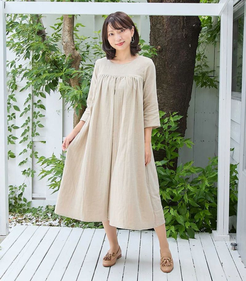 Wガーゼのコットンワンピース1枚でさらりとお出かけワンピース