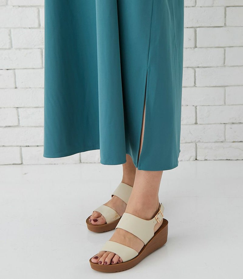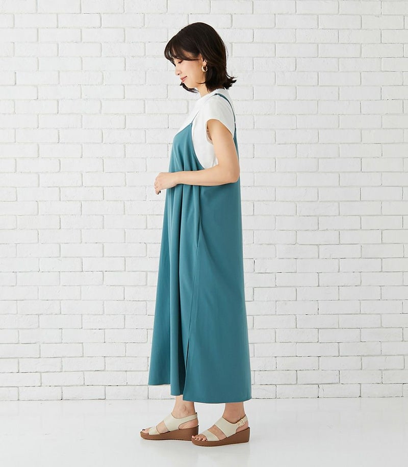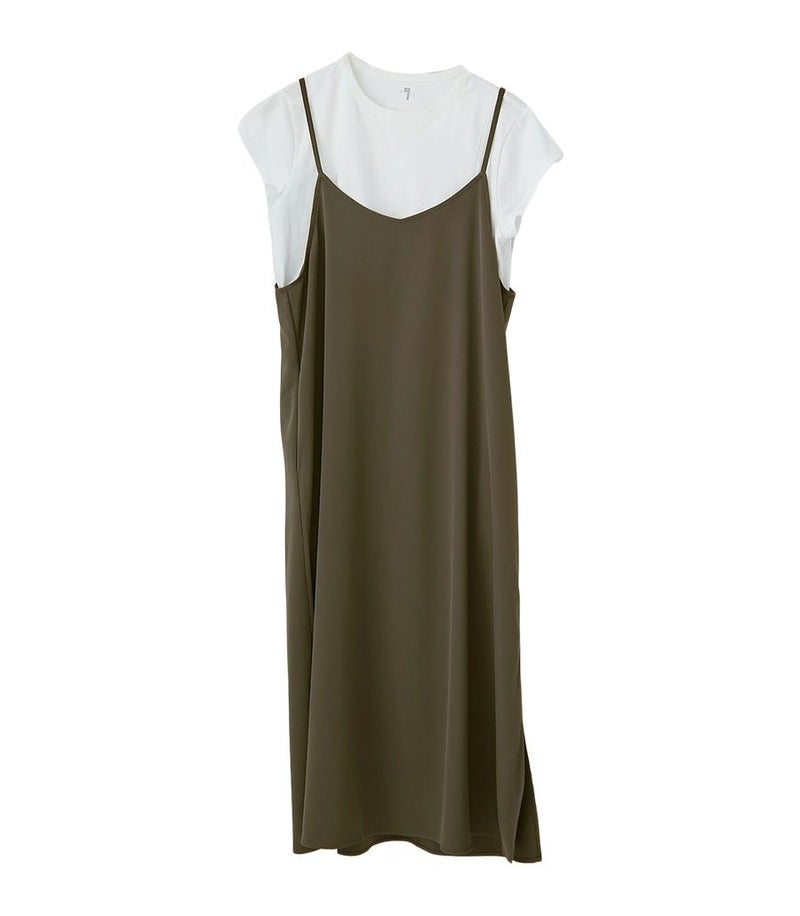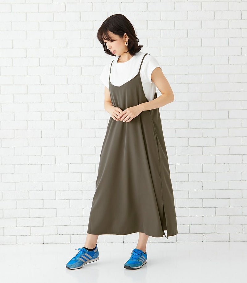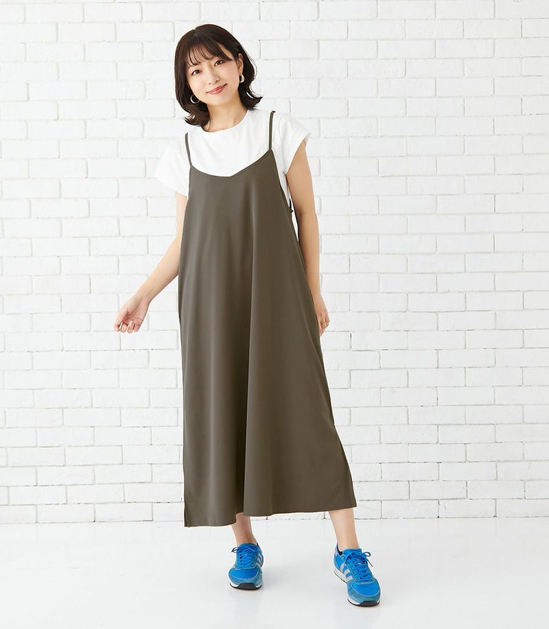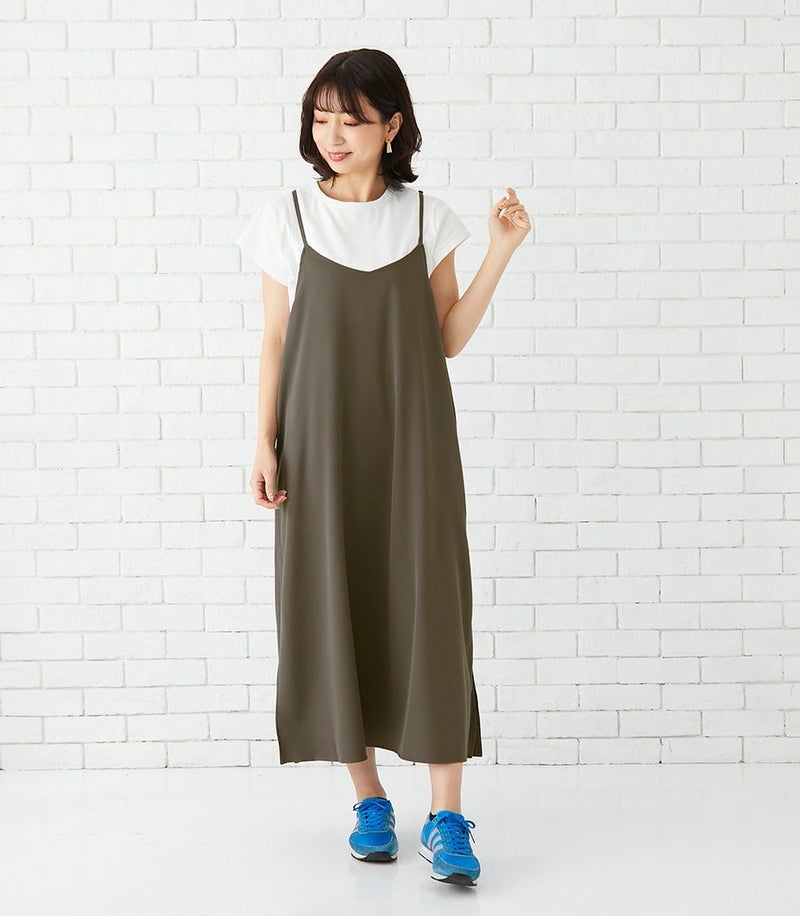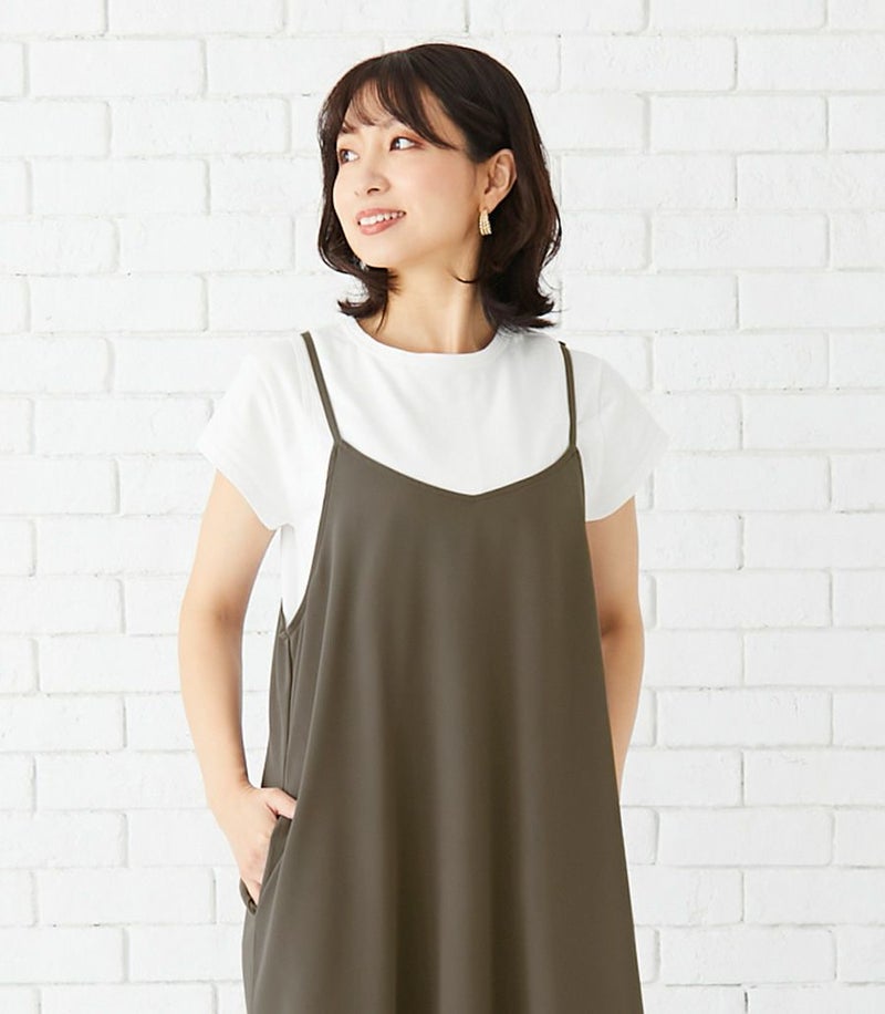 Tシャツは目の詰まったしっかりとした上質なコットン100%天竺素材で、お洗濯に強くきれいなラインが長続きします。キャミワンピースはマットでドライタッチな風合いで、きれいめな印象。ストレッチ性もあり着心地も◎