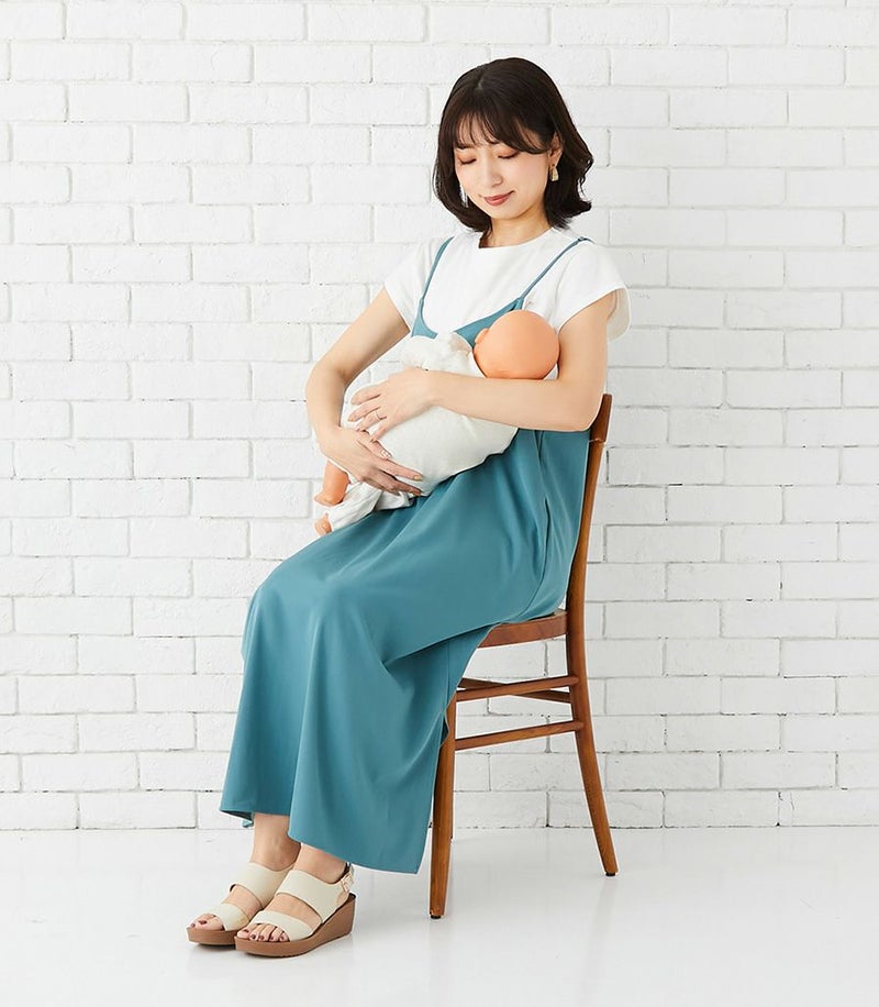 ラインがきれいでしっかりとしたコットン100%Tシャツ+マットでドライタッチな風合いのキャミワンピースのセットは、着心地のよさと、授乳のしやすい工夫がたくさん。シンプルなのでお手持ちのアイテムにも合わせやすく、季節を問わず活躍する便利なセットワンピース。 ●ポケット×2 〈マタニティ(腹囲100cm)対応授乳服〉 まるいお腹を優しく包み込み、妊婦さんがきれいに見えるシルエットにこだわりました。 大きくなったお腹を締めつけず、ゆったりと楽に着ていただけます。 産後の授乳のしやすさも追求した授乳服なので、1枚で2役の便利な授乳服です。 〈生産国:日本〉 〈ワンピース素材:ポリエステル88%、ポリウレタン12%〉 〈Tシャツ素材:綿100%〉 Tシャツは目の詰まったしっかりとした上質なコットン100%天竺素材で、お洗濯に強くきれいなラインが長続きします。キャミワンピースはマットでドライタッチな風合いで、きれいめな印象。ストレッチ性もあり着心地も◎ 〈洗濯表記:洗濯機OK/ネット使用/アイロン時あて布使用〉