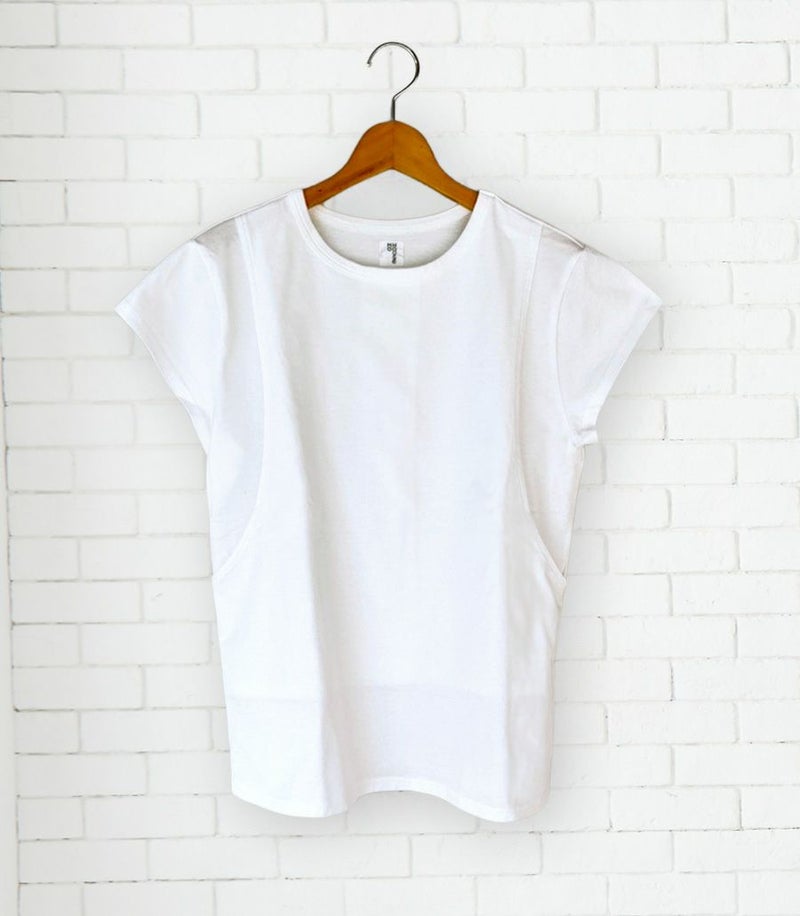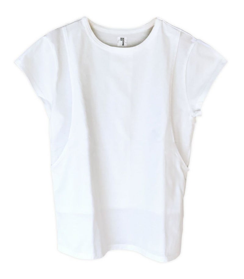モーハウスの授乳服ならではの、ボタンもファスナーもない授乳口。だからこその「授乳しやすさ」と「安全性」には自信があります。 前身頃が二重構造になっていて、上側の身頃にはサイドのスリット、内側の身頃にはセンターにスリットがあり、授乳中は肌が露出してしまう心配はありませんので安心です。授乳後は布を元に戻すだけで、授乳口が隠れます。