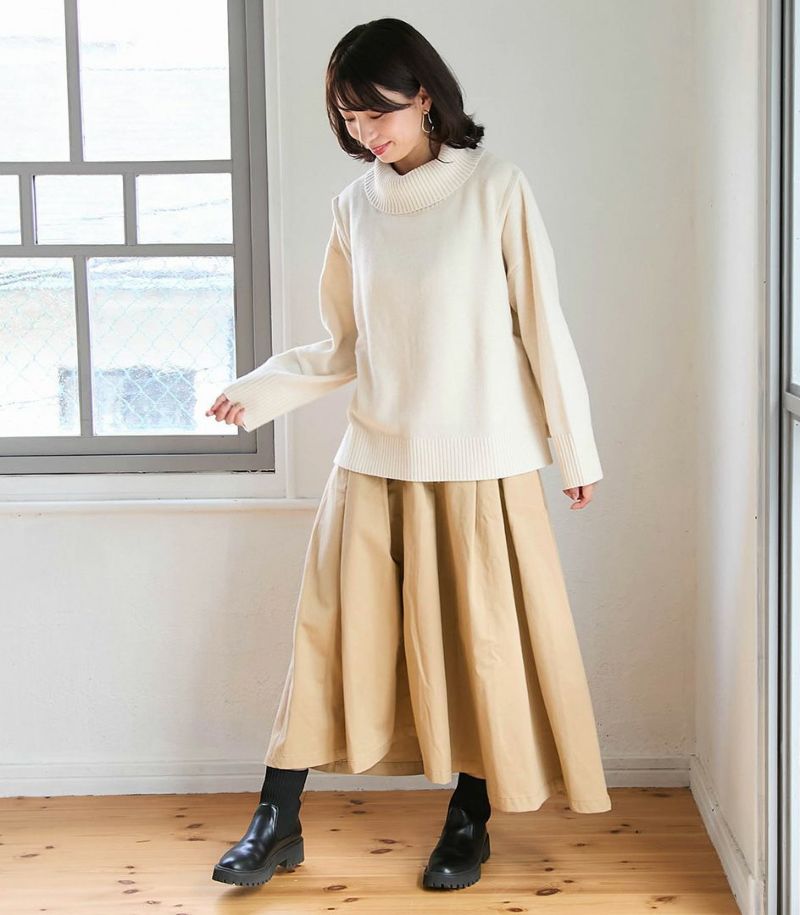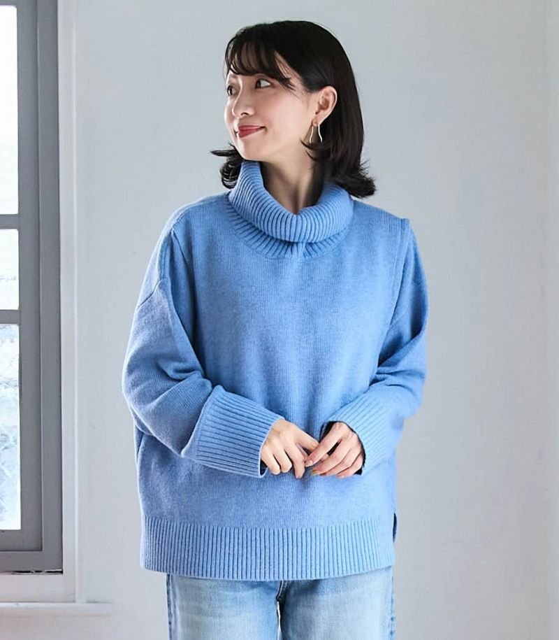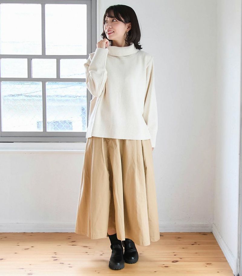 ゆるっとしたオフタートルがポイントのニットトップス。オフタートルネックは、顔まわりや首元がすっきりと見え、小顔効果もあります。ゆったりとしたワイドシルエットで体型カバーも◎ COLOR:アイボリー/MODEL:164cm