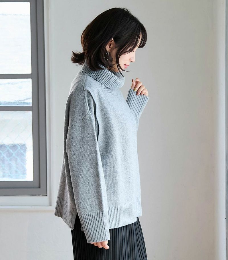 ゆるっとしたオフタートルがポイントのニットトップス。オフタートルネックは、顔まわりや首元がすっきりと見え、小顔効果もあります。ゆったりとしたワイドシルエットで体型カバーも◎ ●ポケット× 〈マタニティ(腹囲100cm)対応授乳服〉 まるいお腹を優しく包み込み、妊婦さんがきれいに見えるシルエットにこだわりました。 大きくなったお腹を締めつけず、ゆったりと楽に着ていただけます。 産後の授乳のしやすさも追求した授乳服なので、1枚で2役の便利な授乳服です。 〈生産国:中国〉 〈素材:アクリル50%、ポリエステル35%、ウール15%〉 適度な厚みとふんわりとした温かみのあるウール素材です。 〈洗濯表記:洗濯機OK/ネット使用〉