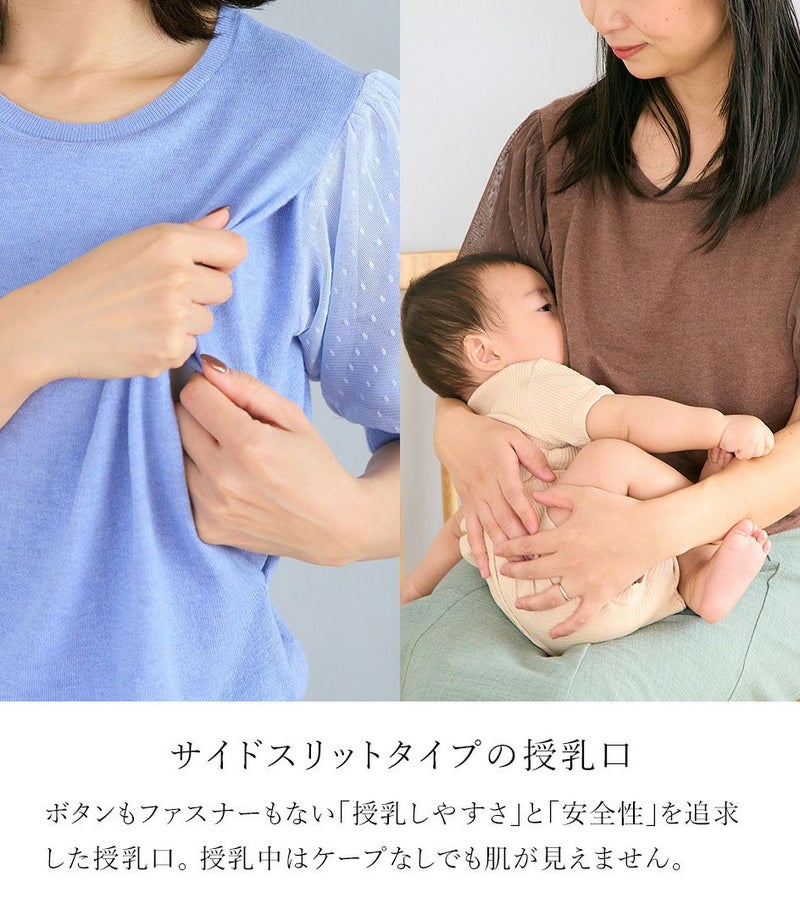 モーハウスオリジナル授乳用トップス チュールパフスリーブニットトップス