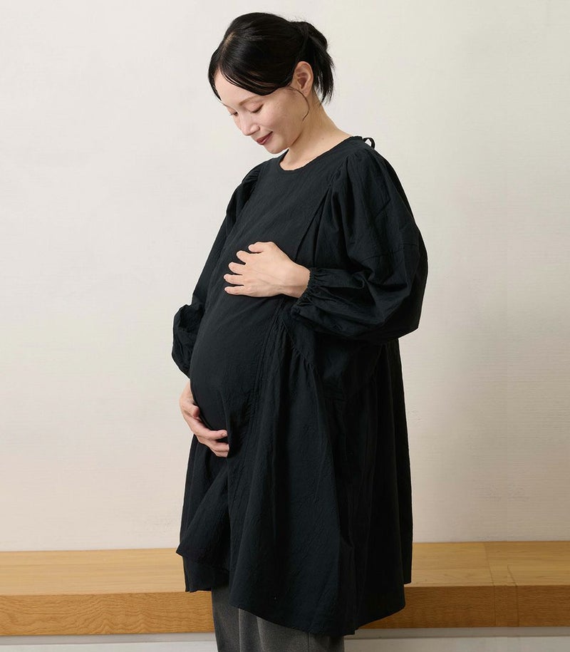 モーハウスオリジナル日本製授乳用トップス ふんわりギャザーチュニックブラウス