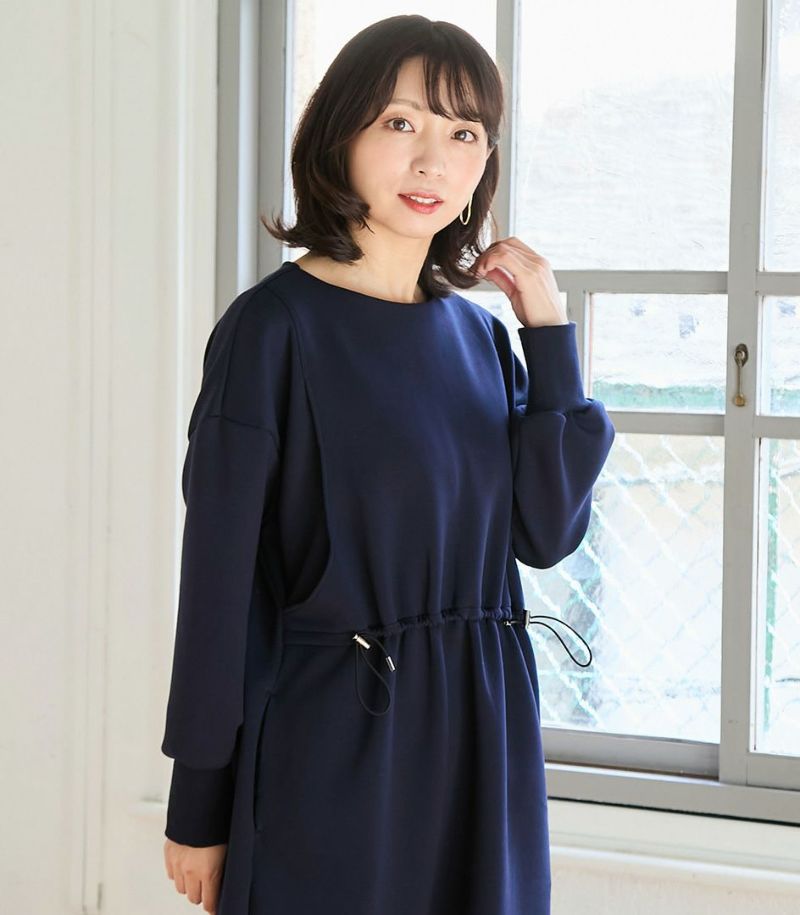 ドロストのデザインがウエストマークになってスタイルアップ効果も◎