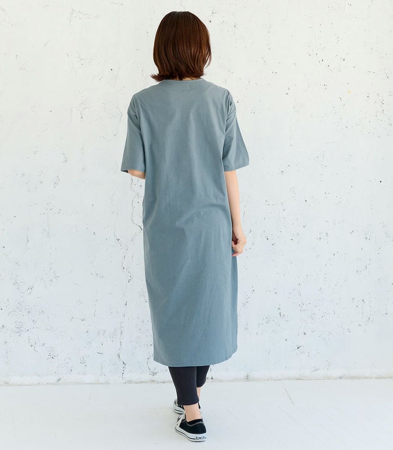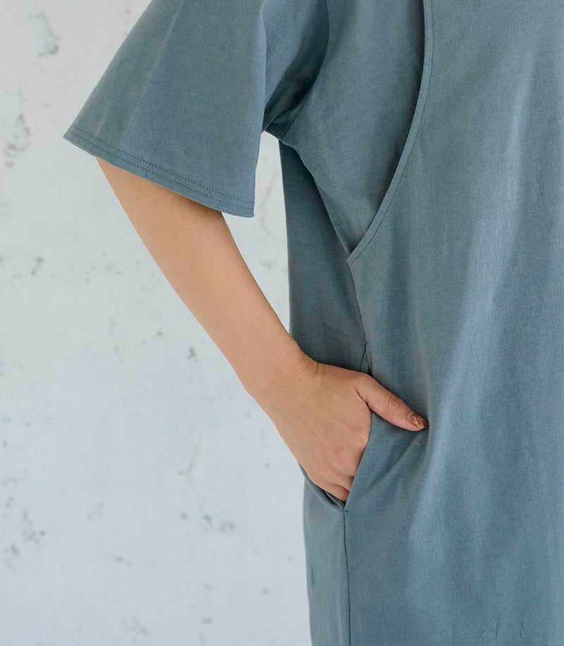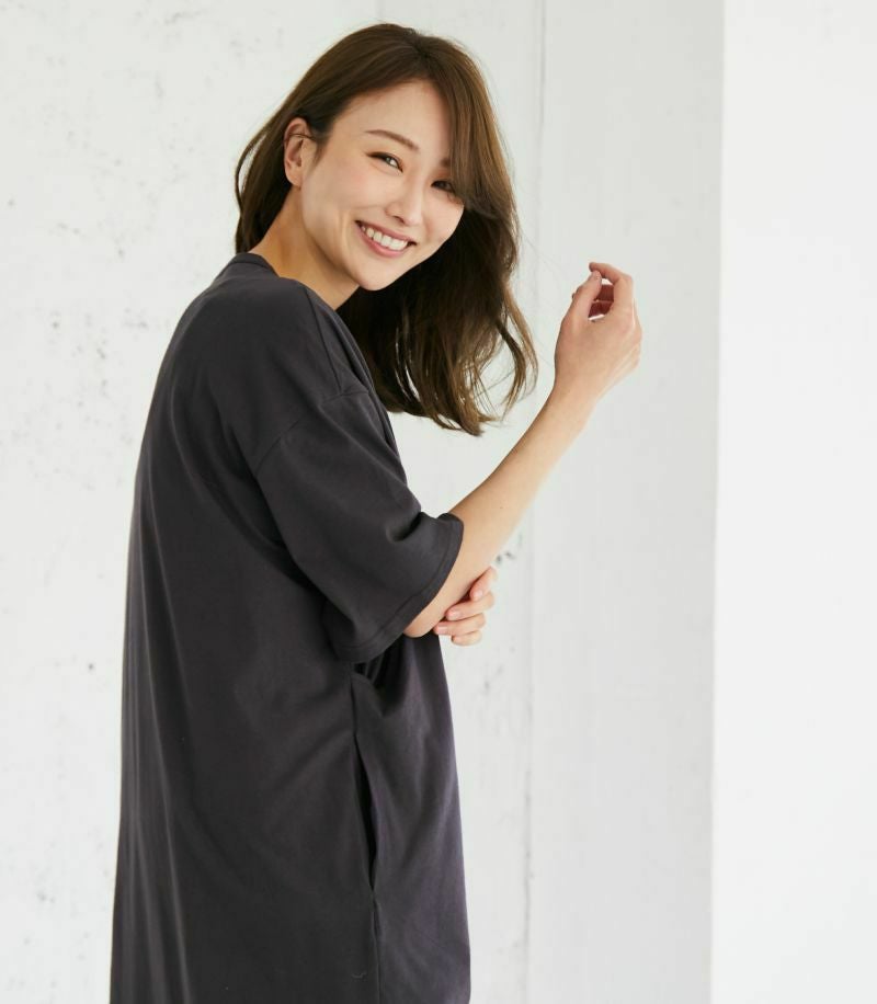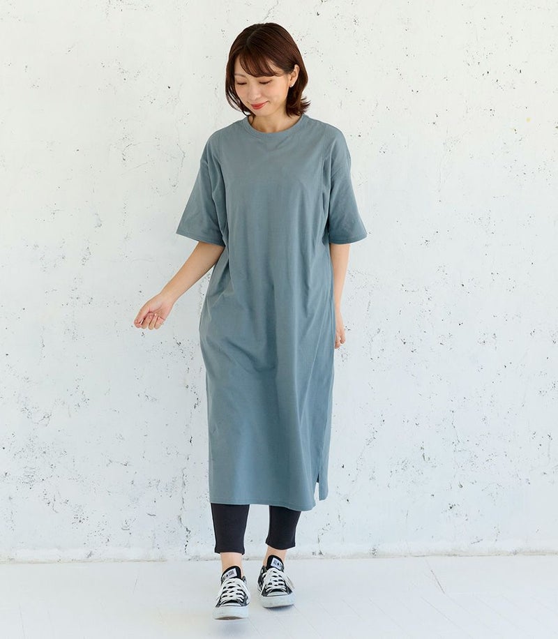 1枚で着られる便利なTシャツワンピース。コットン100%素材はお洗濯に強く、デイリー使いにぴったり。ゆったりとした着心地でお家でもお外でも活躍します。 COLOR:ブルーグレー/MODEL:164cm