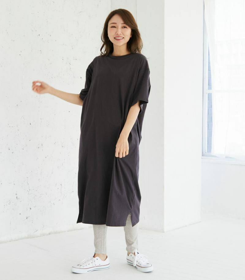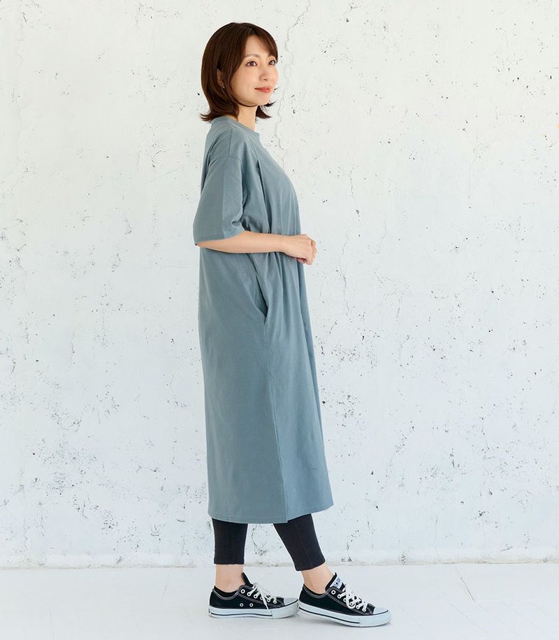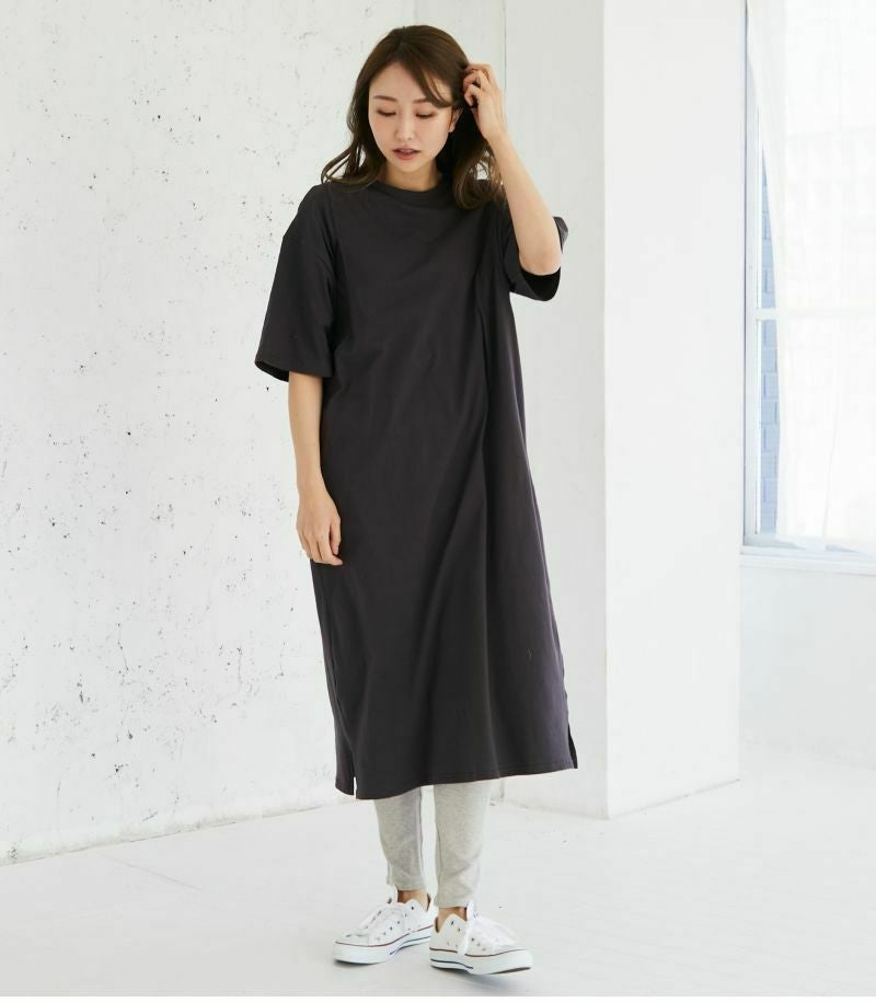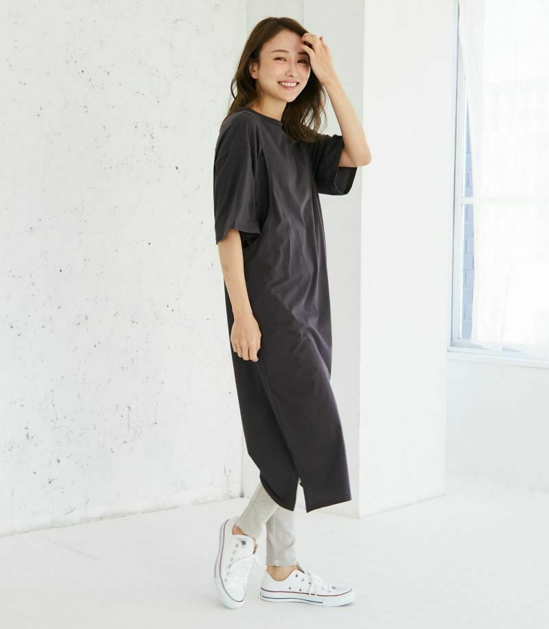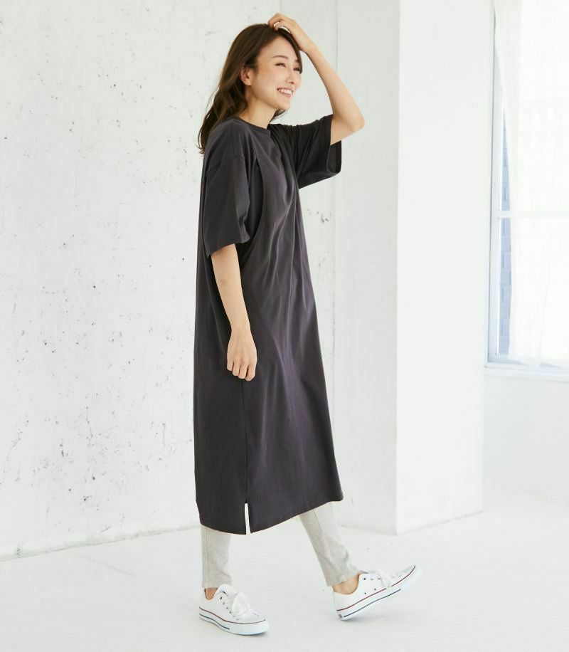 1枚で着られる便利なTシャツワンピース。コットン100%素材はお洗濯に強く、デイリー使いにぴったり。ゆったりとした着心地でお家でもお外でも活躍します。 COLOR:ブルーグレー/MODEL:164cm