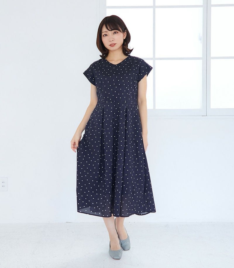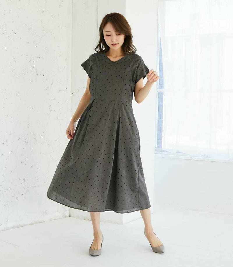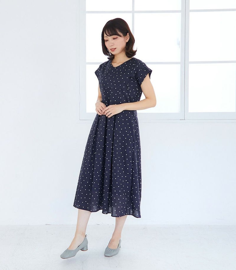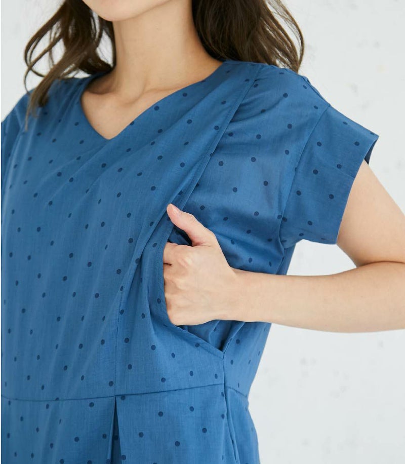 授乳服〈授乳/マタニティ〉 オーガニックドットワンピース 授乳服 マタニティ服 日本製