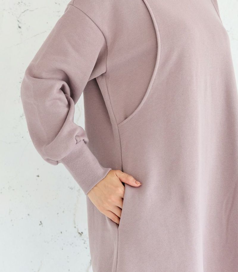 人気のパーカーワンピースに新色が登場!やわらかな裏毛素材を使用した、シンプルなパーカーワンピースは1枚着るだけであたたかく寒い季節も快適にすごせる授乳服です。人気のオーバーシルエットでたっぷりゆったり着られ、マタニティさんもストレスフリーで過ごせます。デイリーだけでなく、部屋着やルームウェアとしても◎ COLOR:ラベンダーベージュ/MODEL:164cm