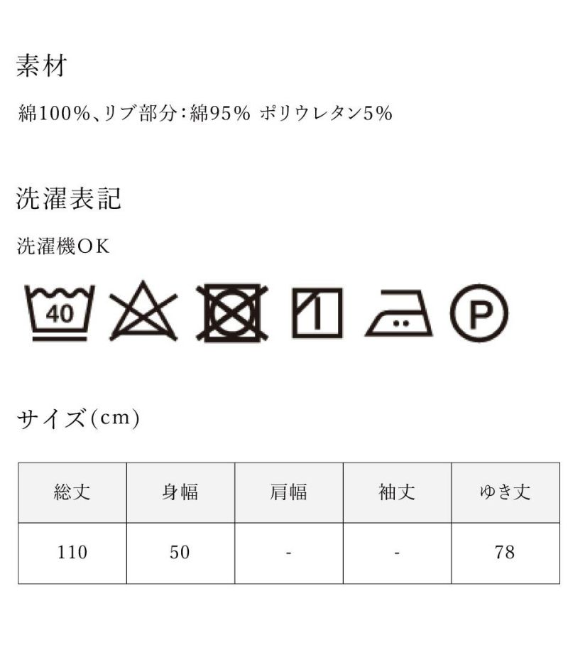 コットン100%で素肌に優しい上質な素材、お洗濯にもつよく型くずれしにくいのもうれしいですね。