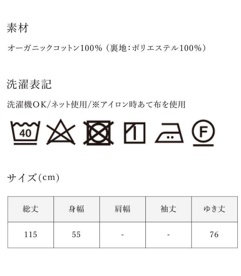 〈素材:オーガニックコットン100%(裏地:ポリエステル100%)〉