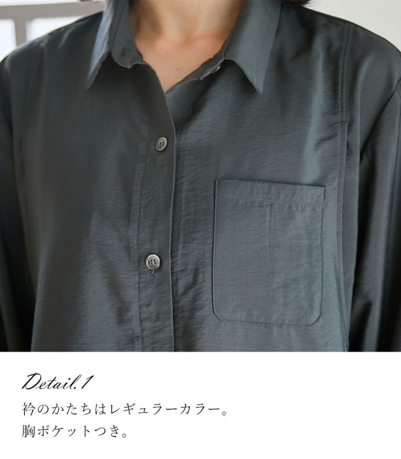 ドレープのきれいなレーヨン素材を使用。ほどよいハリ感と光沢感が特徴のナチュラルな生地です。吸湿性があり、さらっとした肌触りで快適な着心地です。