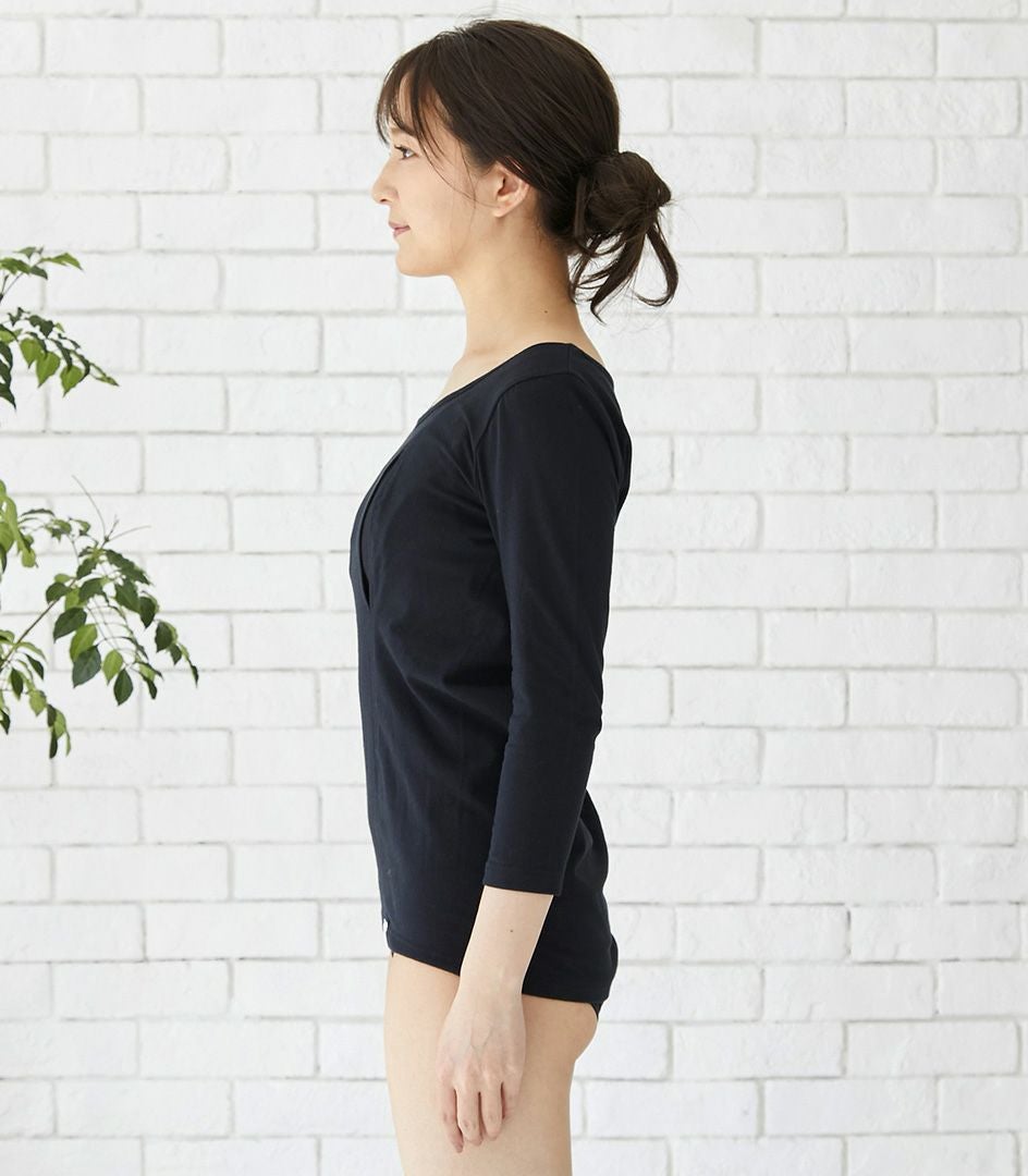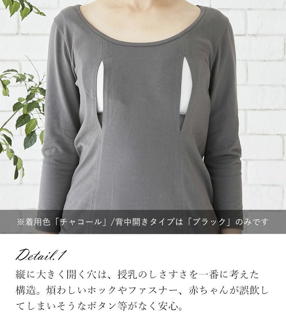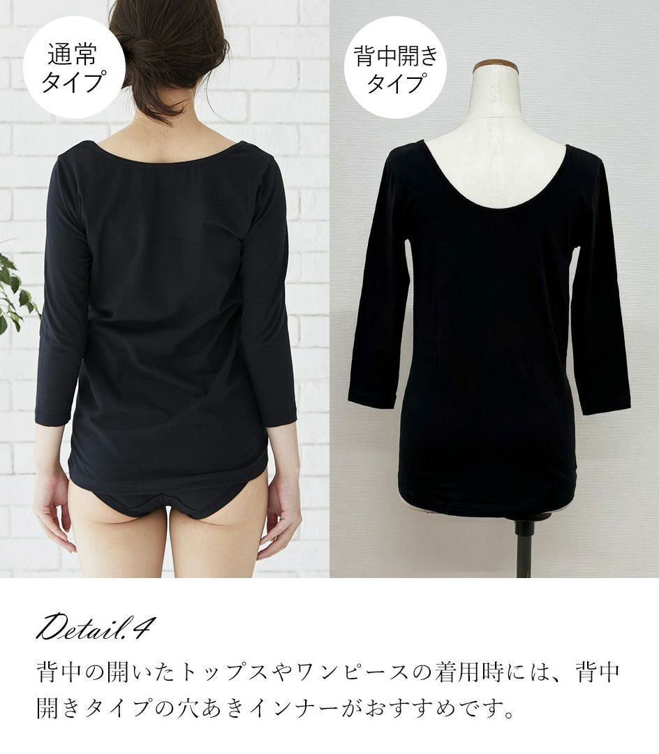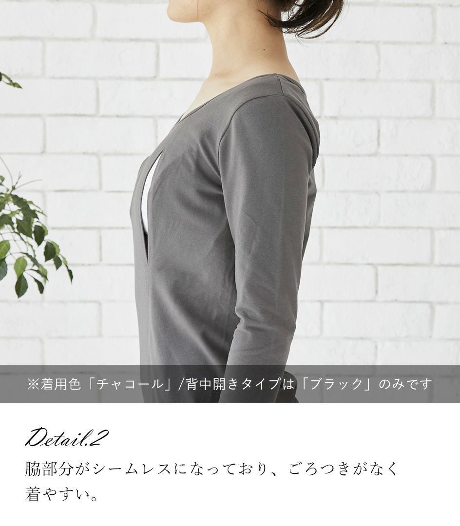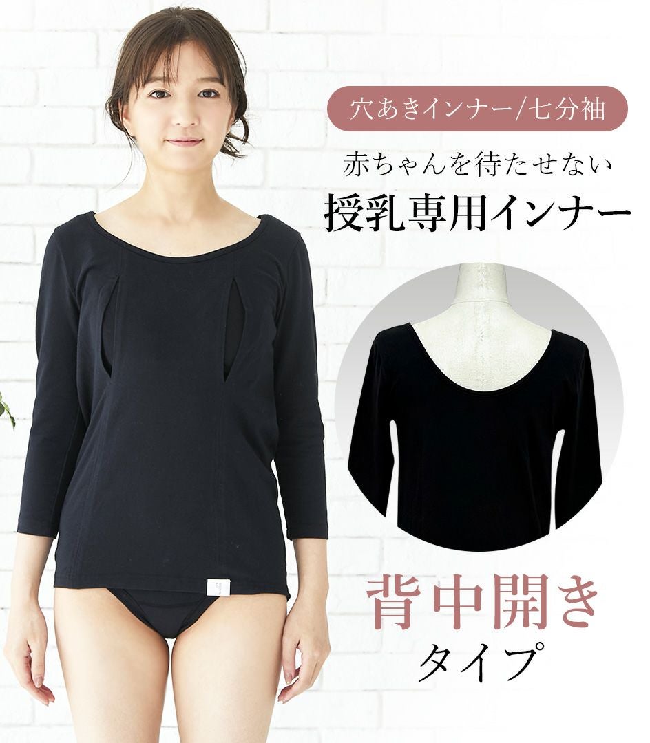 シンプル穴あきインナー(背中開き)七分袖 授乳用インナー