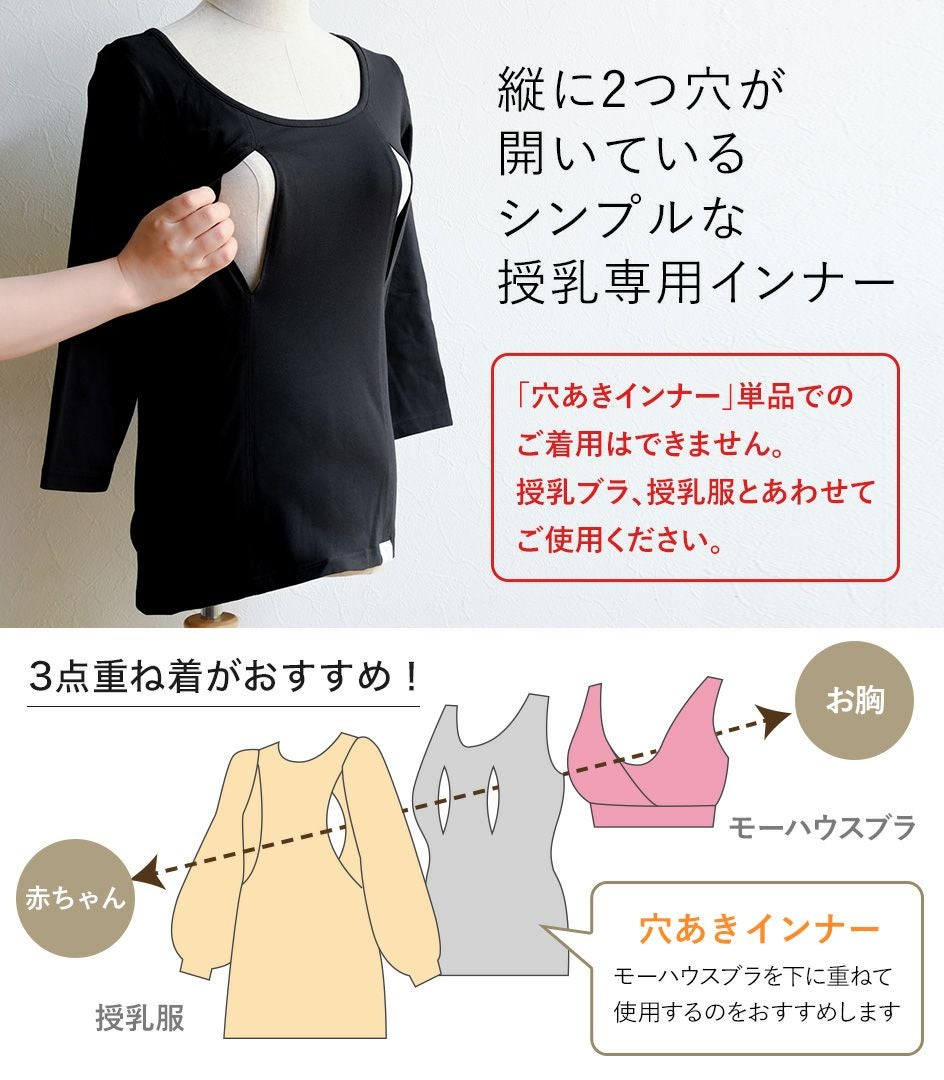 シンプル穴あき(七分袖) 授乳用インナー