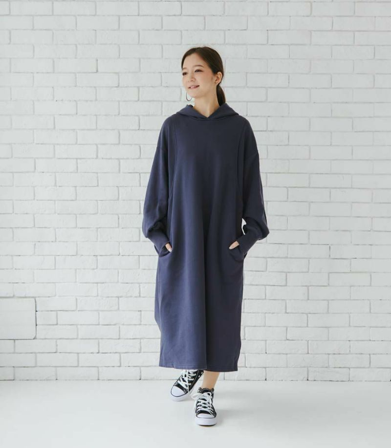 モーハウスオリジナル日本製授乳用ワンピース 裏毛パーカーワンピース