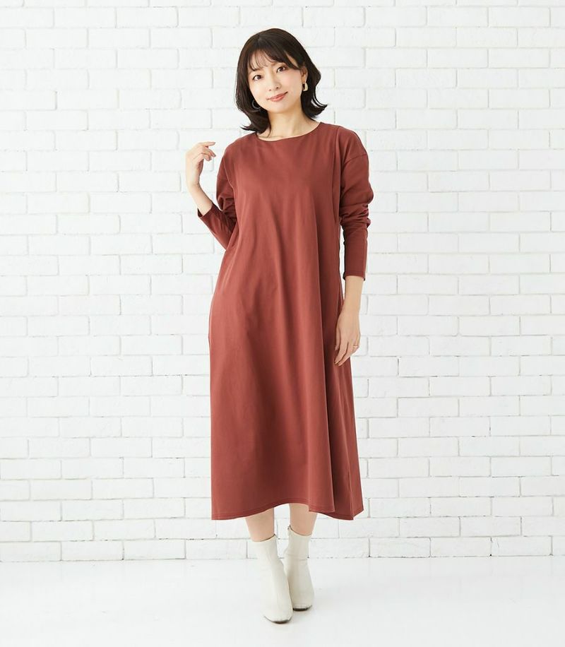 上品なコットン100%素材に、ドレープを効かせたゆったり感で大人のリラックスムードを表現したロングワンピース。裾に向かって贅沢に生地を使用することでやわらかな動きを与えてくれます。ドロップショルダーが、1枚でさらっと着ても手抜き感を感じさせません。 両脇のポケットも嬉しいポイント。 ポケット×2 〈生産国:日本〉 〈マタニティ(腹囲100cm)対応授乳服〉 まるいお腹を優しく包み込み、妊婦さんがきれいに見えるシルエットにこだわりました。 大きくなったお腹を締めつけず、ゆったりと楽に着ていただけます。 産後の授乳のしやすさも追求した授乳服なので、1枚で2役の便利な授乳服です。 〈素材:綿100%〉 しっかりとした目の詰まったコットン100%素材。洗濯にも強く型崩れしにくい素材です。 〈洗濯表記:洗濯機OK〉