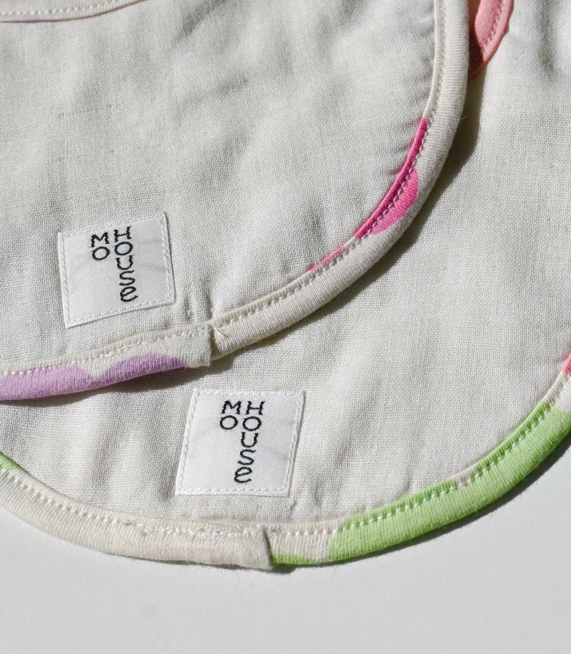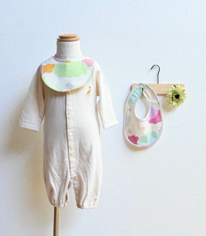 デザイナー中川桂さんオリジナルイラストがプリントされたベビースタイ。 モーブラwishやwishはらまきと同柄のためママとのさりげないリンクコーデを楽しめます。 明るくかわいらしい柄のため、ギフトとしても喜ばれる1枚です。
