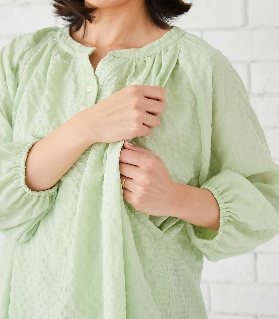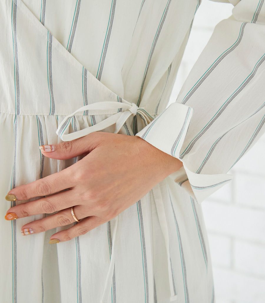 臨月までゆったり着られる前開きタイプのパジャマワンピースが1枚あると、入院中の診察時にも対応できて産前産後に大活躍。