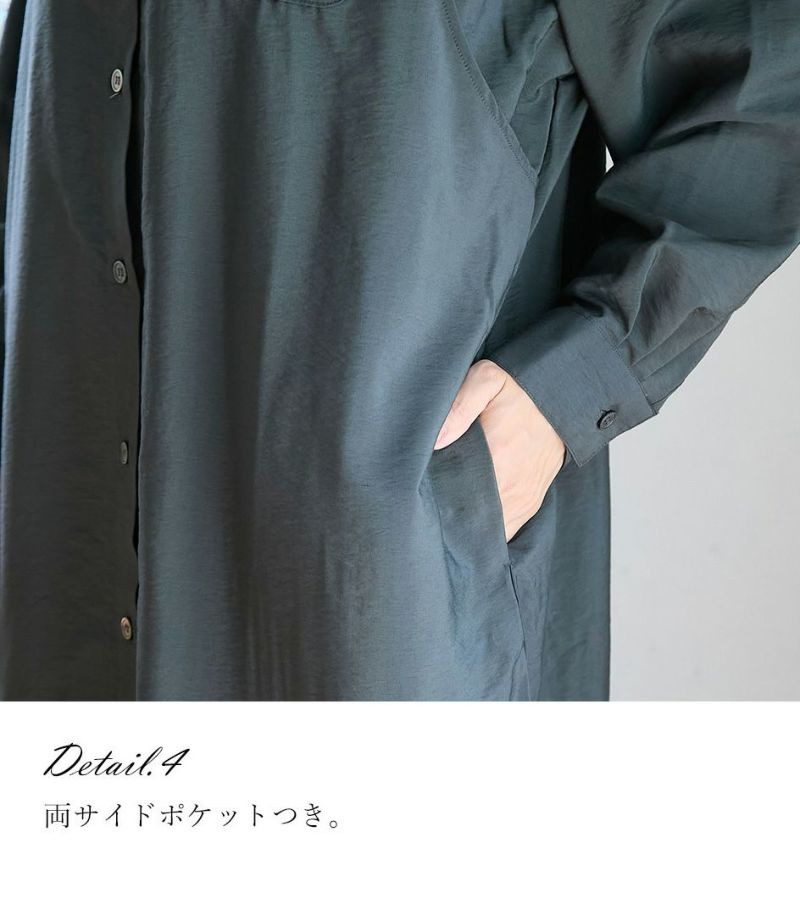 胸のポケットがポイントのシャツワンピース。ゆったり目のサイズ感ですが、落ち感のある生地ですっきりと着ていただけます。前ボタンは全て外せる仕様となっております。 COLOR:チャコール/MODEL:164cm