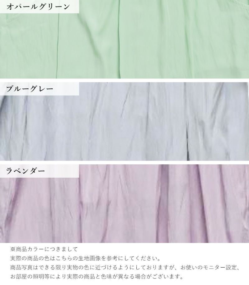 割織糸を使用したふくらみと落ち感が特徴のデシン素材。ポリエステル100%で薄くても透けにくいのが特徴。お洗濯にも強いイージーケア素材です。