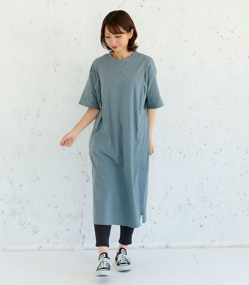 1枚で着られる便利なTシャツワンピース。コットン100%素材はお洗濯に強く、デイリー使いにぴったり。ゆったりとした着心地でお家でもお外でも活躍します。