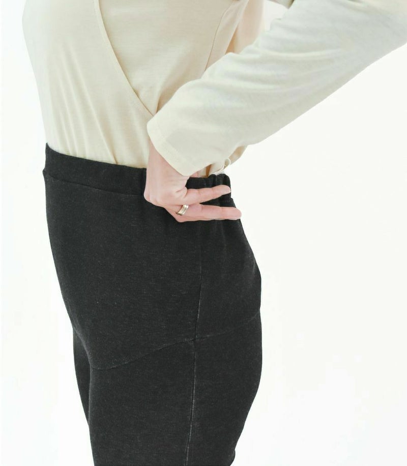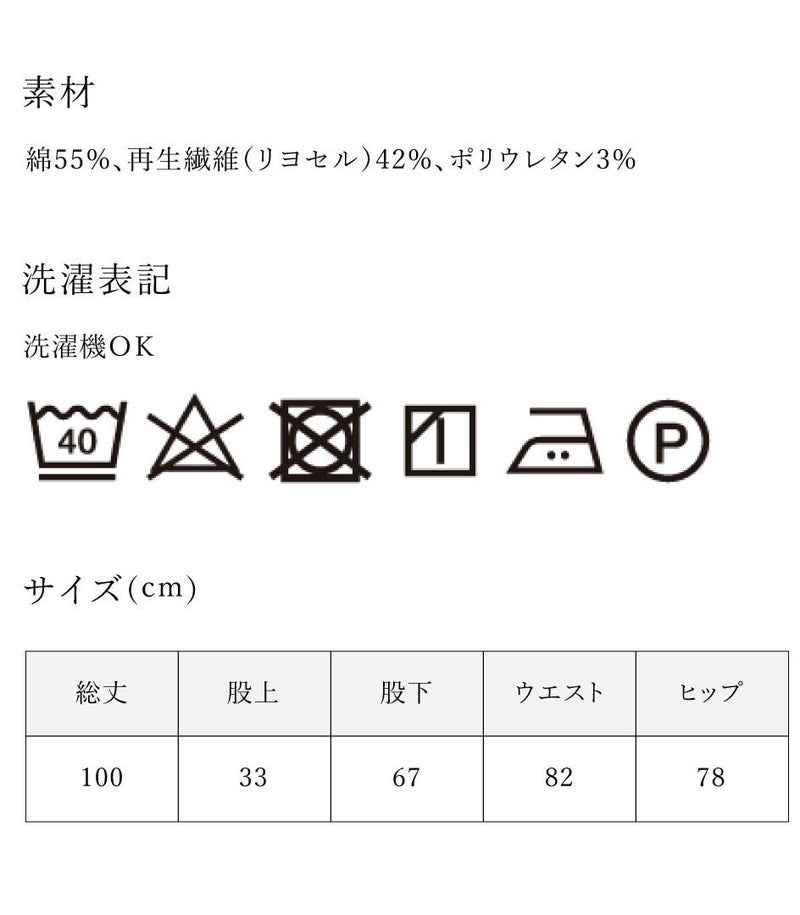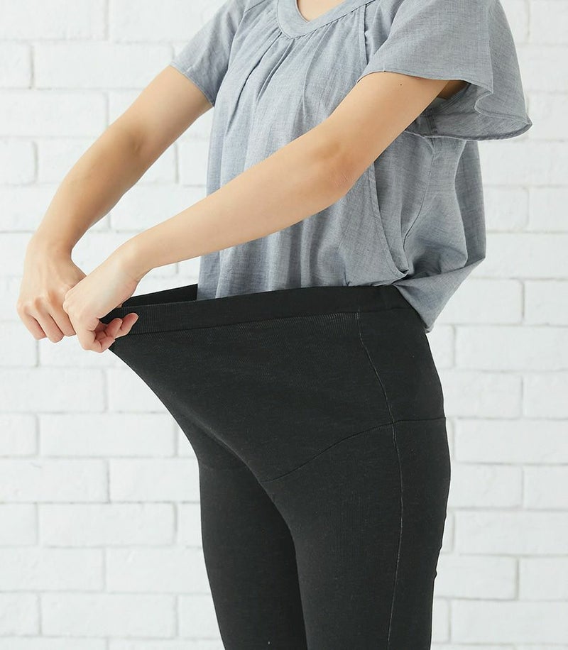 細めのリブが縦ラインを強調し、着やせ効果と履き心地抜群のレギンスはママに優しいコットン素材。マタニティのお腹を優しく包みこんでくれます。アジャスター付きで産後まで長く着用できます。 ●ポケット× 〈マタニティ(腹囲100cm)対応〉 まるいお腹を優しく包み込み、妊婦さんがきれいに見えるシルエットにこだわりました。 大きくなったお腹を締めつけず、ゆったりと楽に着ていただけます。 〈生産国:日本〉 〈素材:綿55% 再生繊維(リヨセル)42% ポリウレタン3%〉 コットンリヨセル混のリブ素材は柔らかい肌さわりで快適なはき心地。フィット感も優れていています。細めのリブの凹凸が細見え効果も期待できます。 〈洗濯表記:洗濯機OK〉