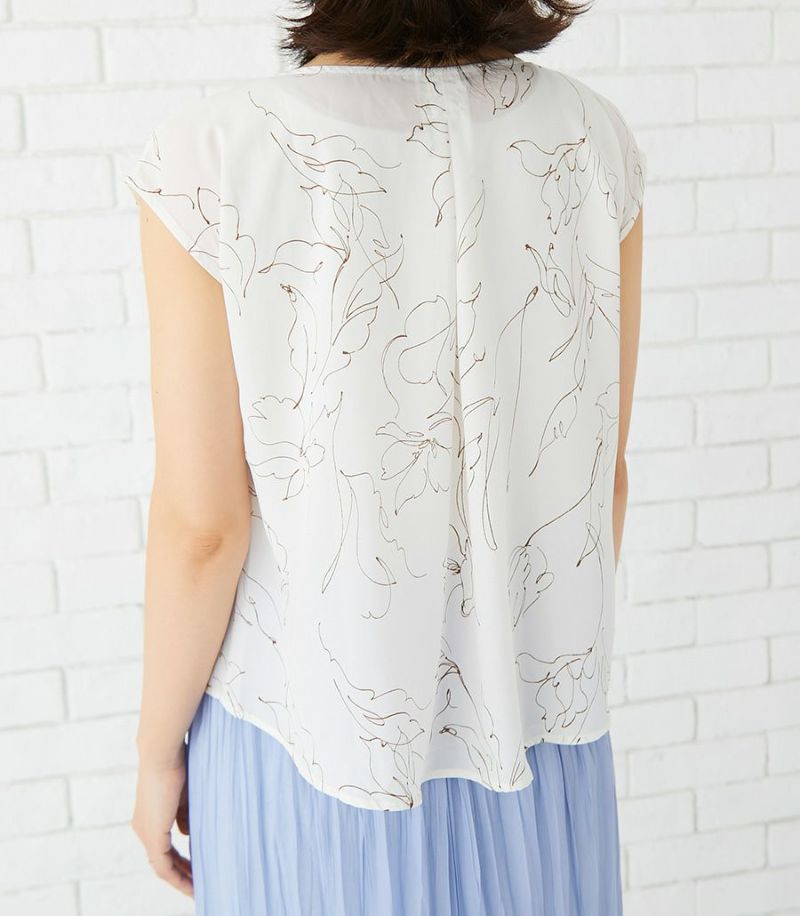 インナー付きスカートと、センターオープンタイプのコンパクトトップスのセットアップワンピース。ラインフラワープリントのトップスとスカート部分の透け感が大人っぽくきれいめな印象に。華やかで春夏のお出かけに活躍する1着です。 COLOR:ペールグリーン/MODEL:164cm