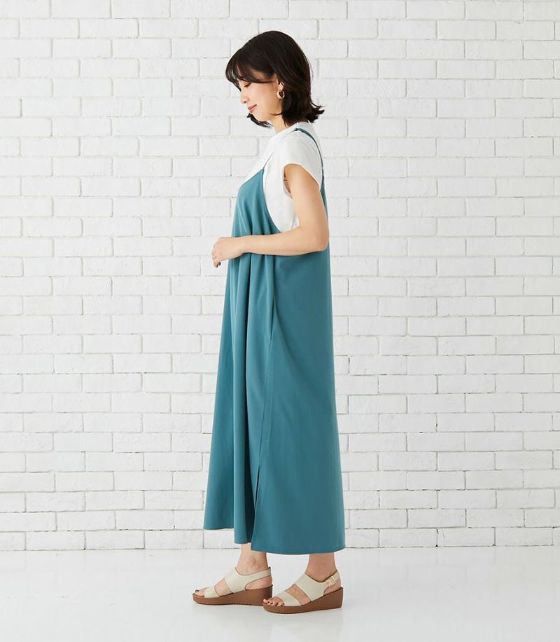 ラインがきれいでしっかりとしたコットン100%のTシャツ+マットでドライタッチな風合いのキャミワンピースのセットは、着心地のよさと、授乳のしやすい工夫がたくさん。シンプルなのでお手持ちのアイテムにも合わせやすく、季節を問わず活躍する便利なセットワンピース。 COLOR:ブルーグリーン/MODEL:164cm