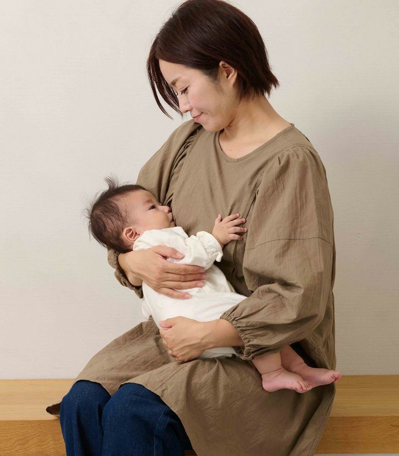 モーハウスオリジナル日本製授乳用トップス ふんわりギャザーチュニックブラウス