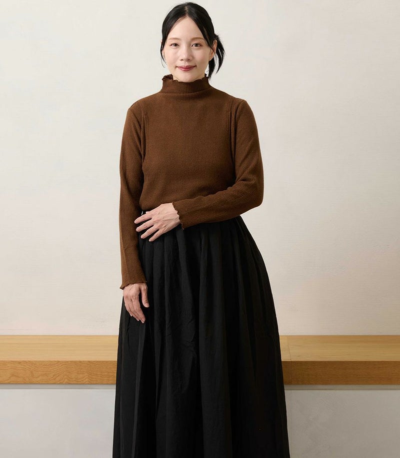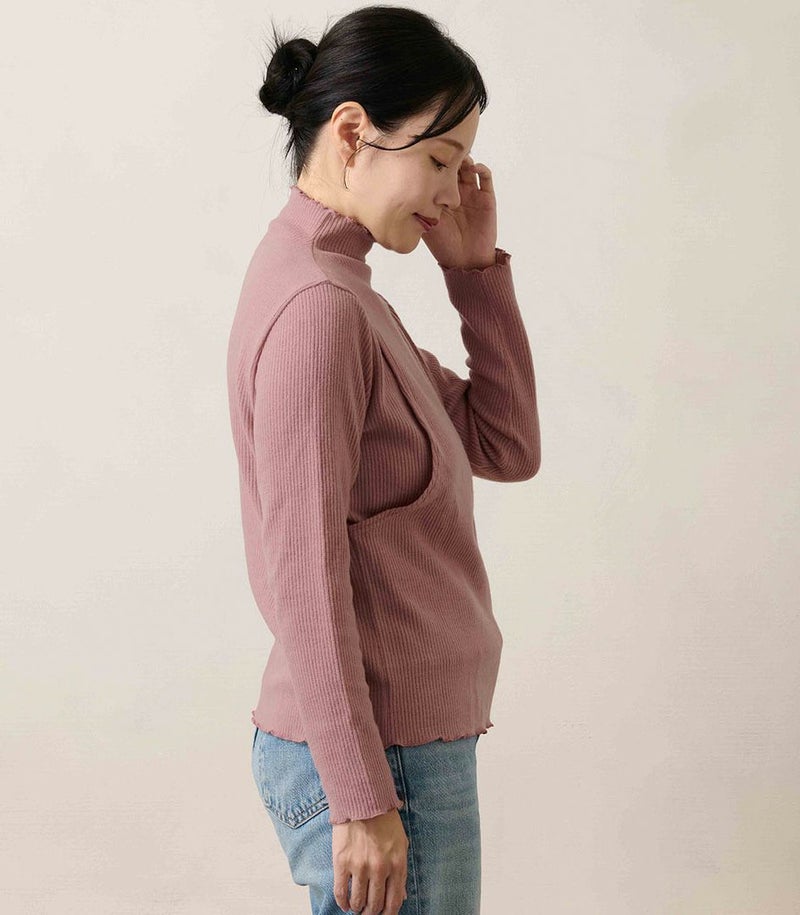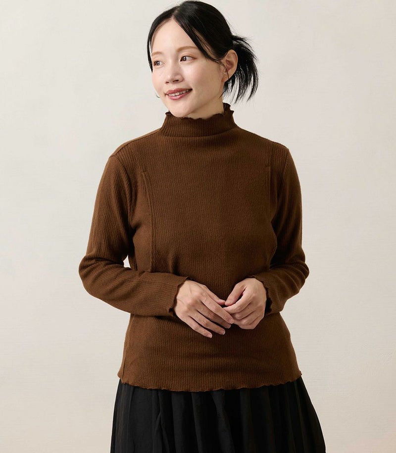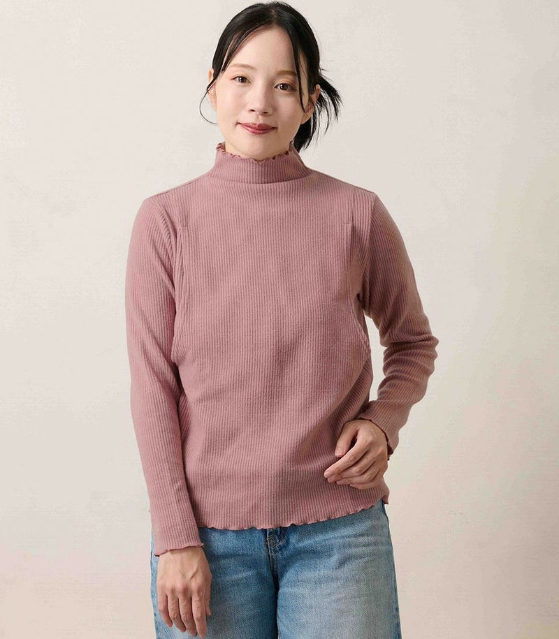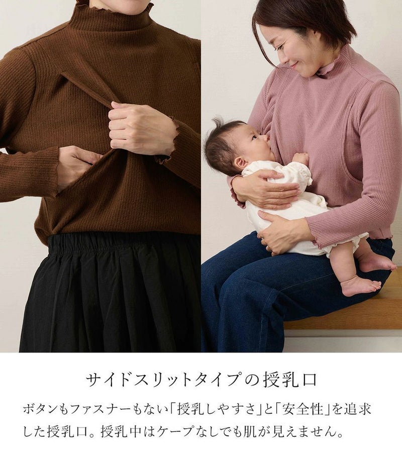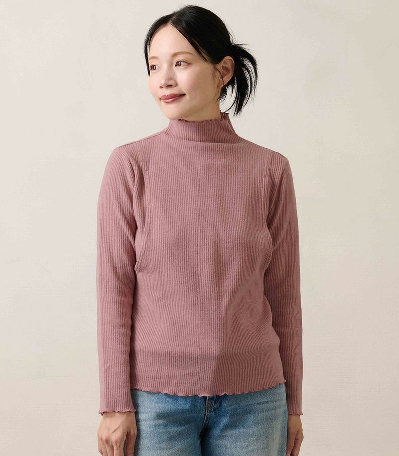 モーハウスオリジナル日本製産後ママ専用授乳トップス メロウフリルハイネックトップス