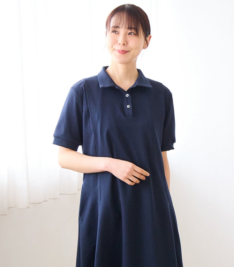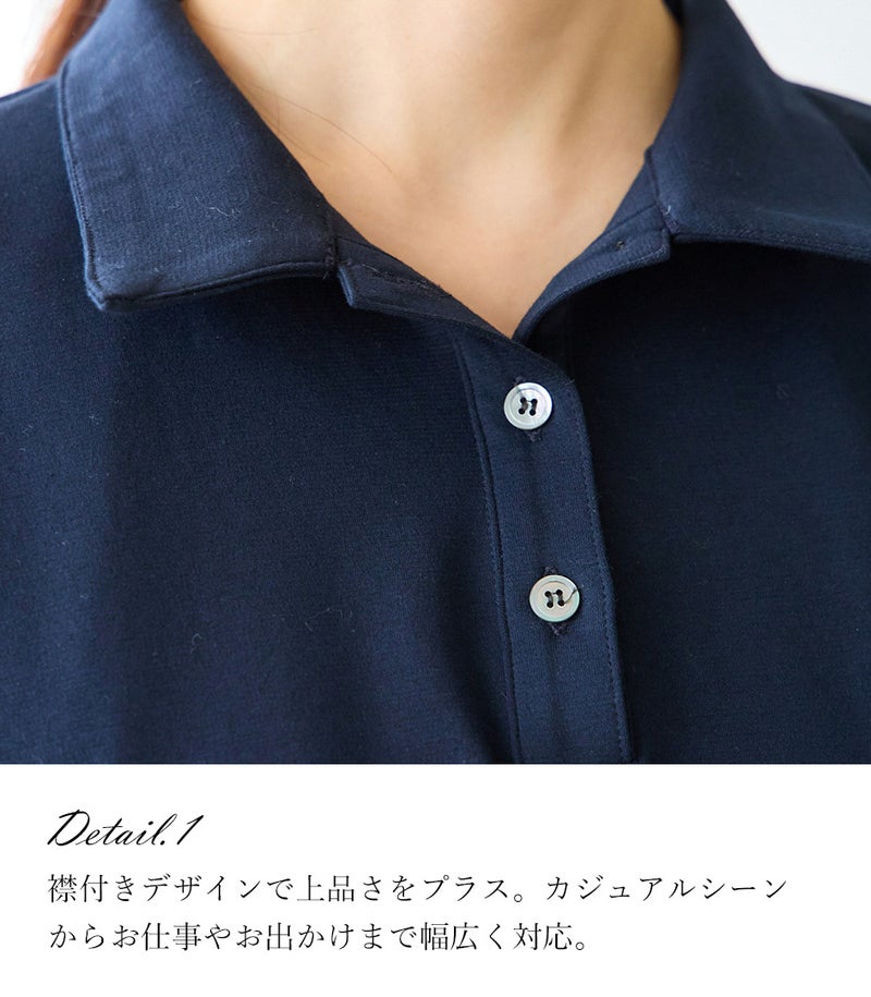 朝は自分の準備より、家族のことが優先。アイロンをかける時間まではなかなか取れない——そんな毎日に寄り添う一枚です。伸縮性があり動きやすいので、抱っこや送り迎え、外出が続く日にもストレスフリー。ウエストをすっきり見せるデザインと襟付き仕様で、1枚着るだけできちんと整った印象に。