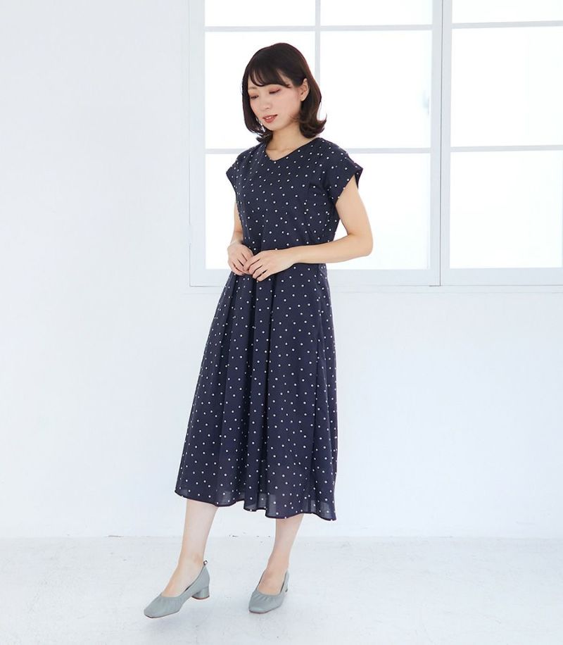 授乳服〈授乳/マタニティ〉 【試着対象】オーガニックドットワンピース 授乳服 マタニティ服 日本製